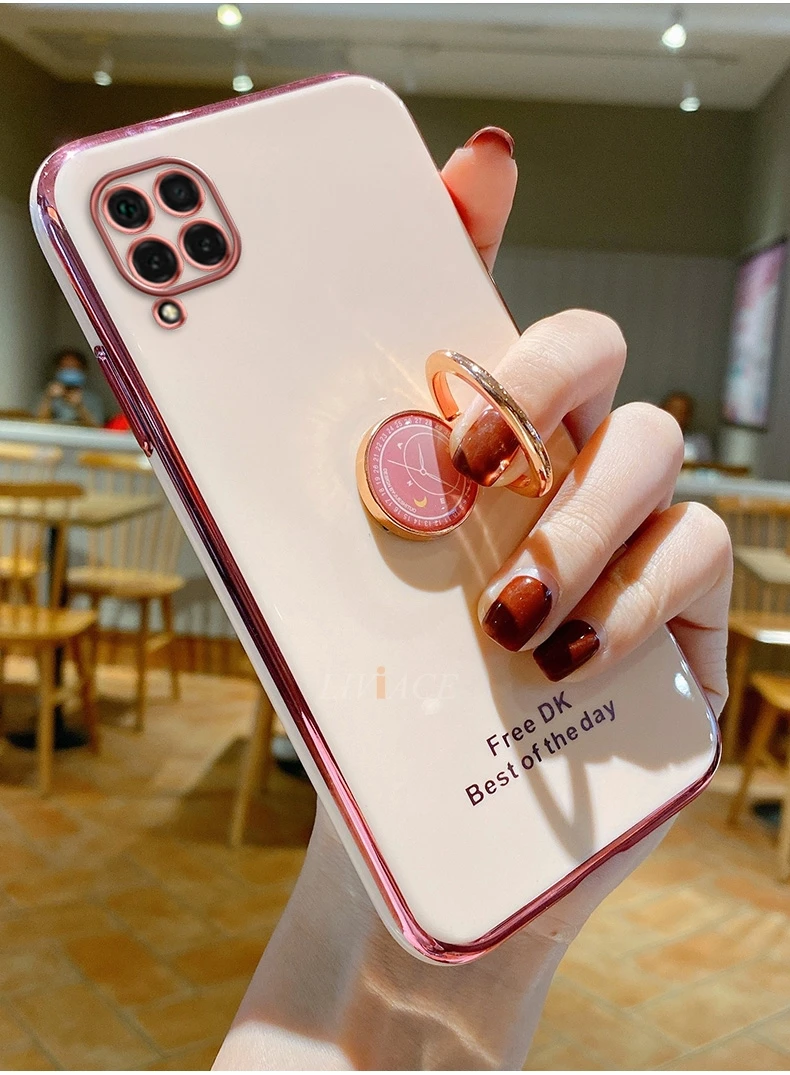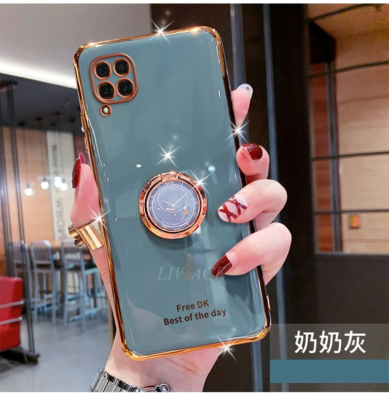 Comprar Funda de teléfono con soporte de anillo para Samsung Galaxy A12, A52, A, 12, A32, A72, 4G, 5G, cubierta trasera de silicona suave chapada de lujo