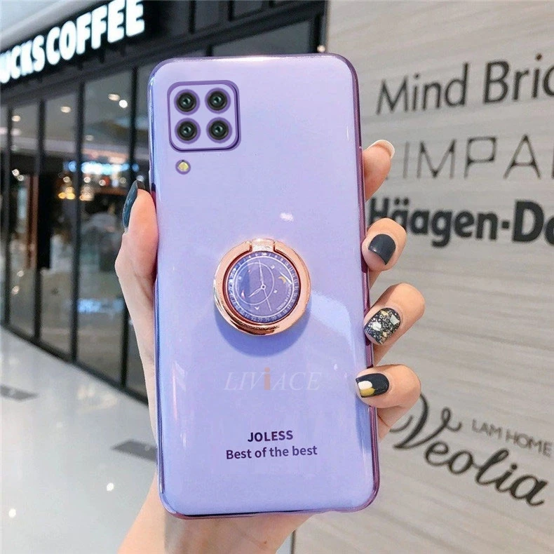 Comprar Funda de teléfono con soporte de anillo para Samsung Galaxy A12, A52, A, 12, A32, A72, 4G, 5G, cubierta trasera de silicona suave chapada de lujo