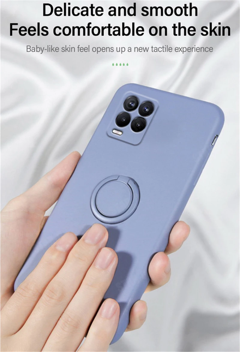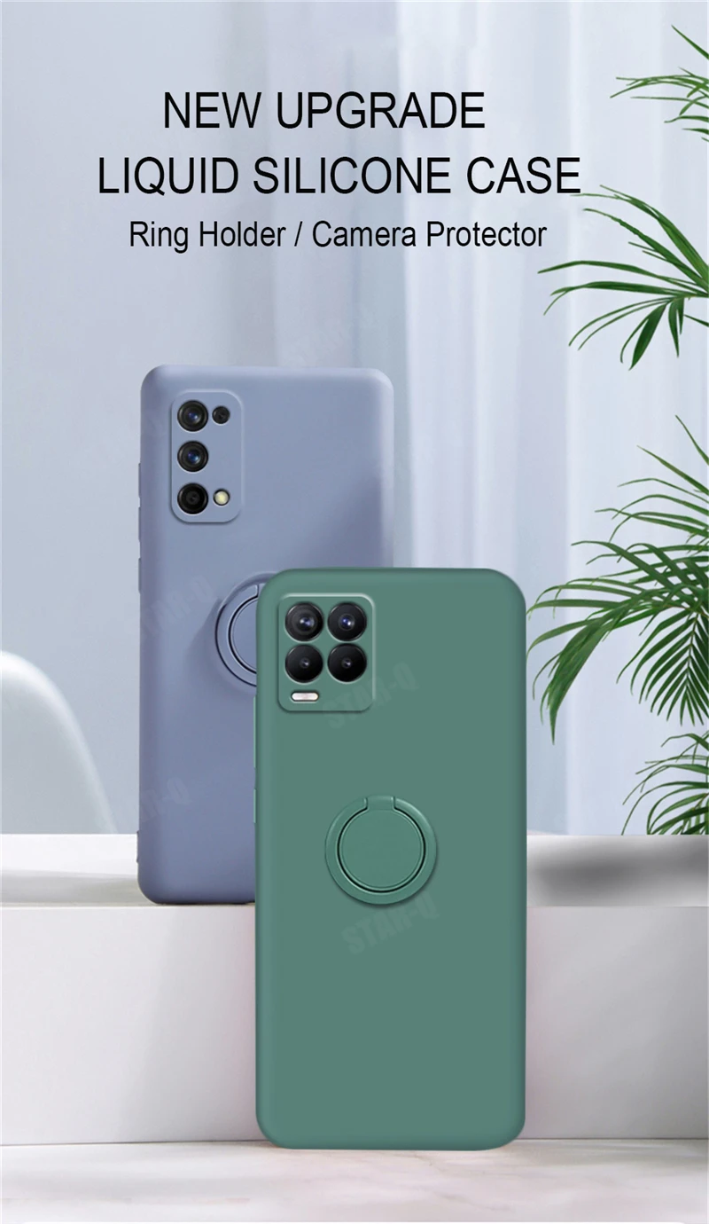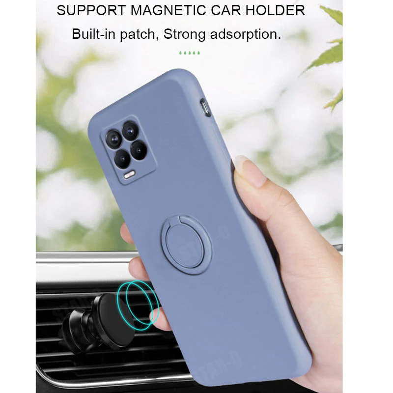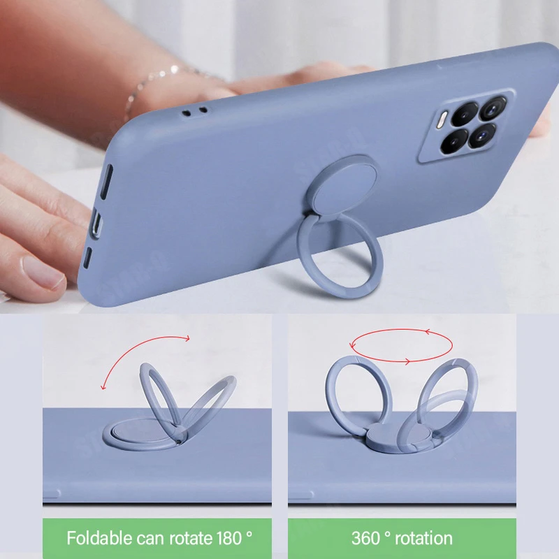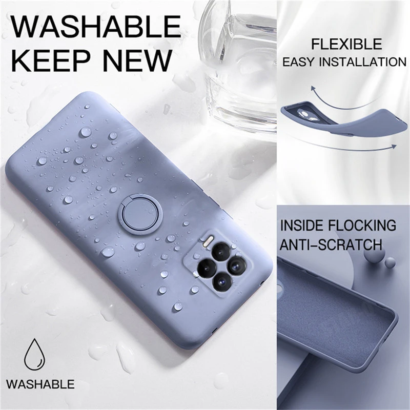 Comprar Funda de teléfono con soporte de anillo de silicona líquida para Oppo Realme 8 7 Pro 4g 5g Gt Neo Master Narzo 30a, funda suave con soporte Original