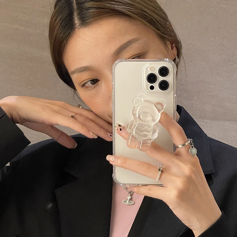 Comprar Funda de teléfono con soporte de anillo transparente de oso coreano para Xiaomi Redmi Note 8 Pro 8T Note8 Note8Pro Note8T, bonita funda con soporte de dibujos animados en 3D
