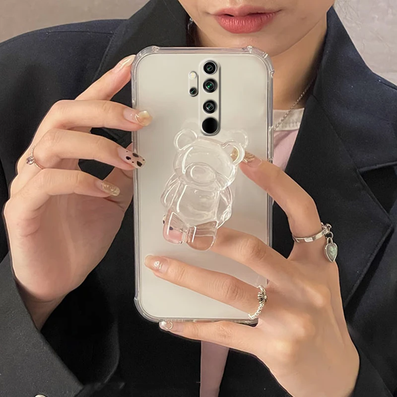 Comprar Funda de teléfono con soporte de anillo transparente de oso coreano para Xiaomi Redmi Note 8 Pro 8T Note8 Note8Pro Note8T, bonita funda con soporte de dibujos animados en 3D