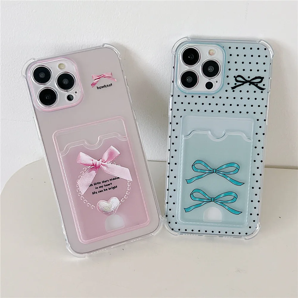 Funda de teléfono con ranura para tarjetas para Samsung A52 A32 A51 A50 A22 A12 A21S A72 A70 A20 A30 A31 A11 Funda suave transparente con lazo bonito
