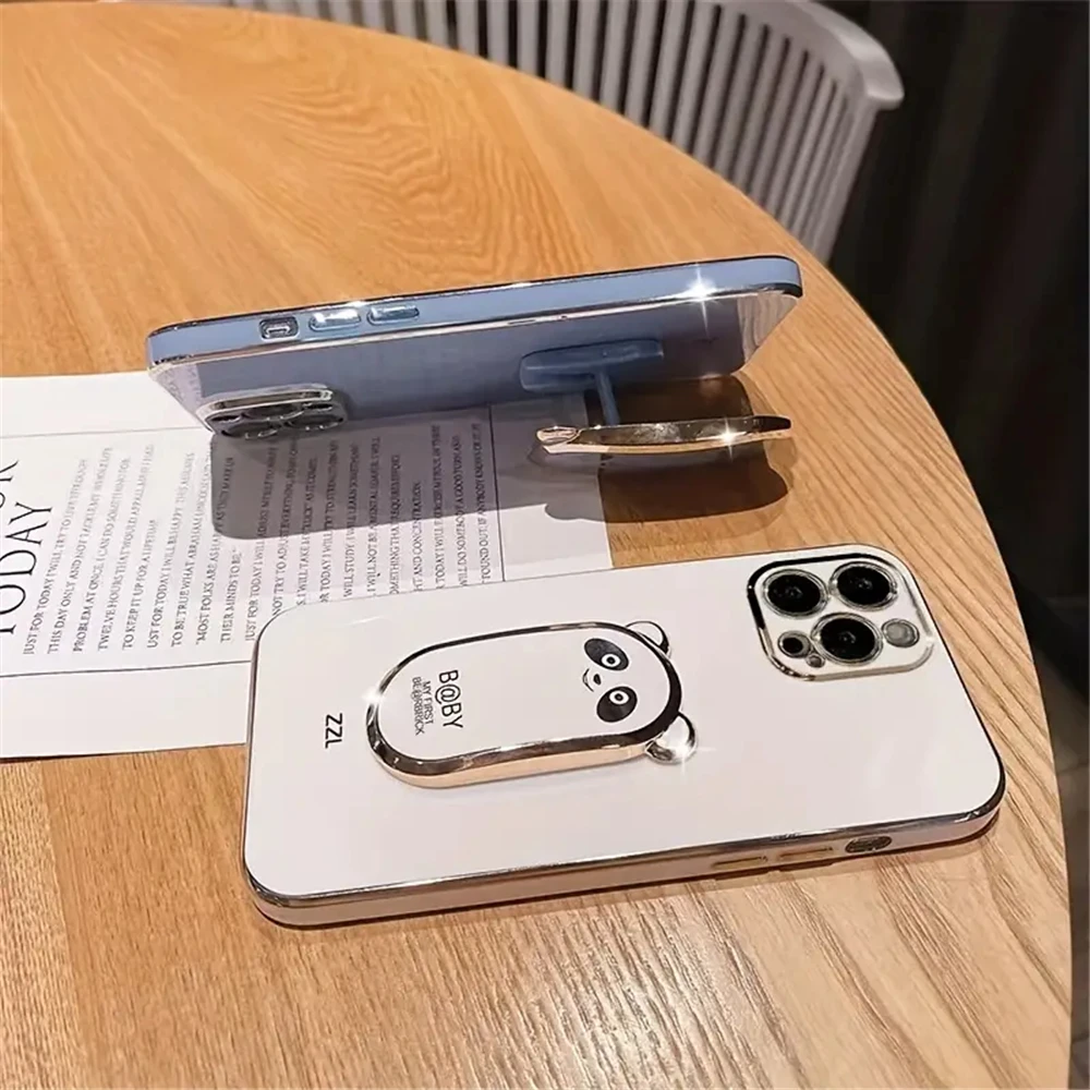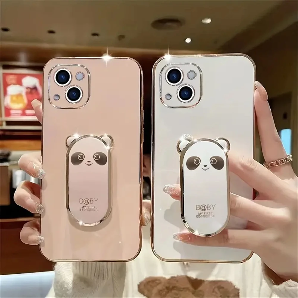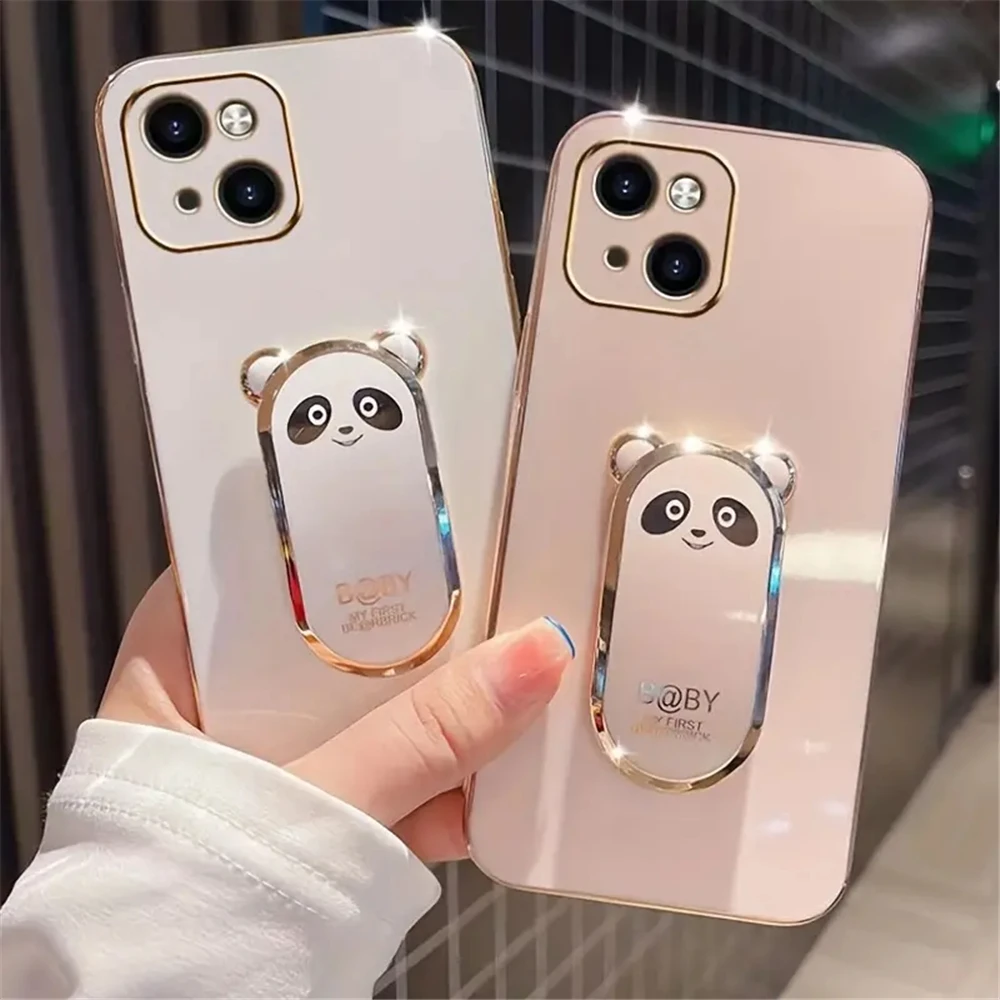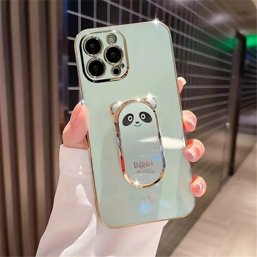 Funda de teléfono con soporte Chapado en Panda 3D para iPhone 11 12 13 14 15 Pro Max 7 8 6 6S Plus 15 X XS XR Max Mini funda de silicona suave