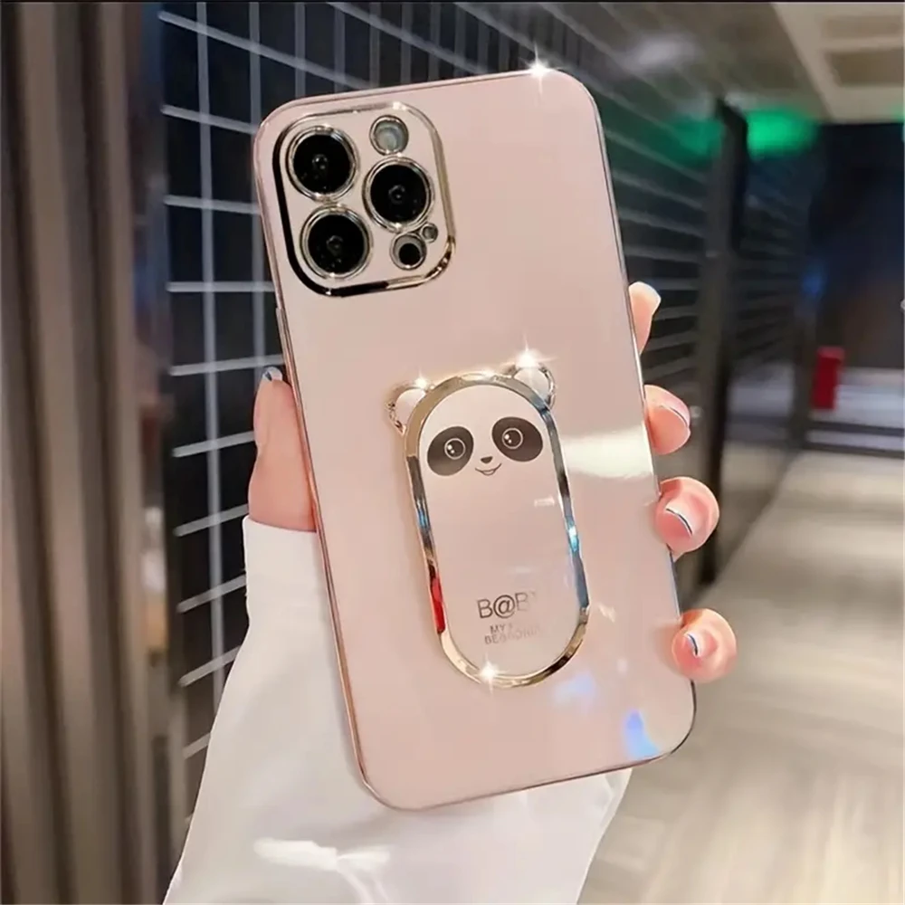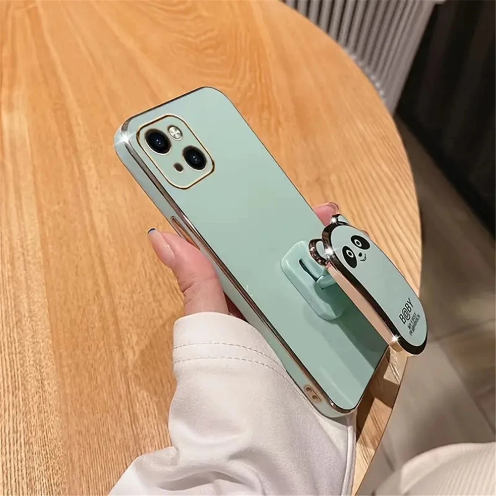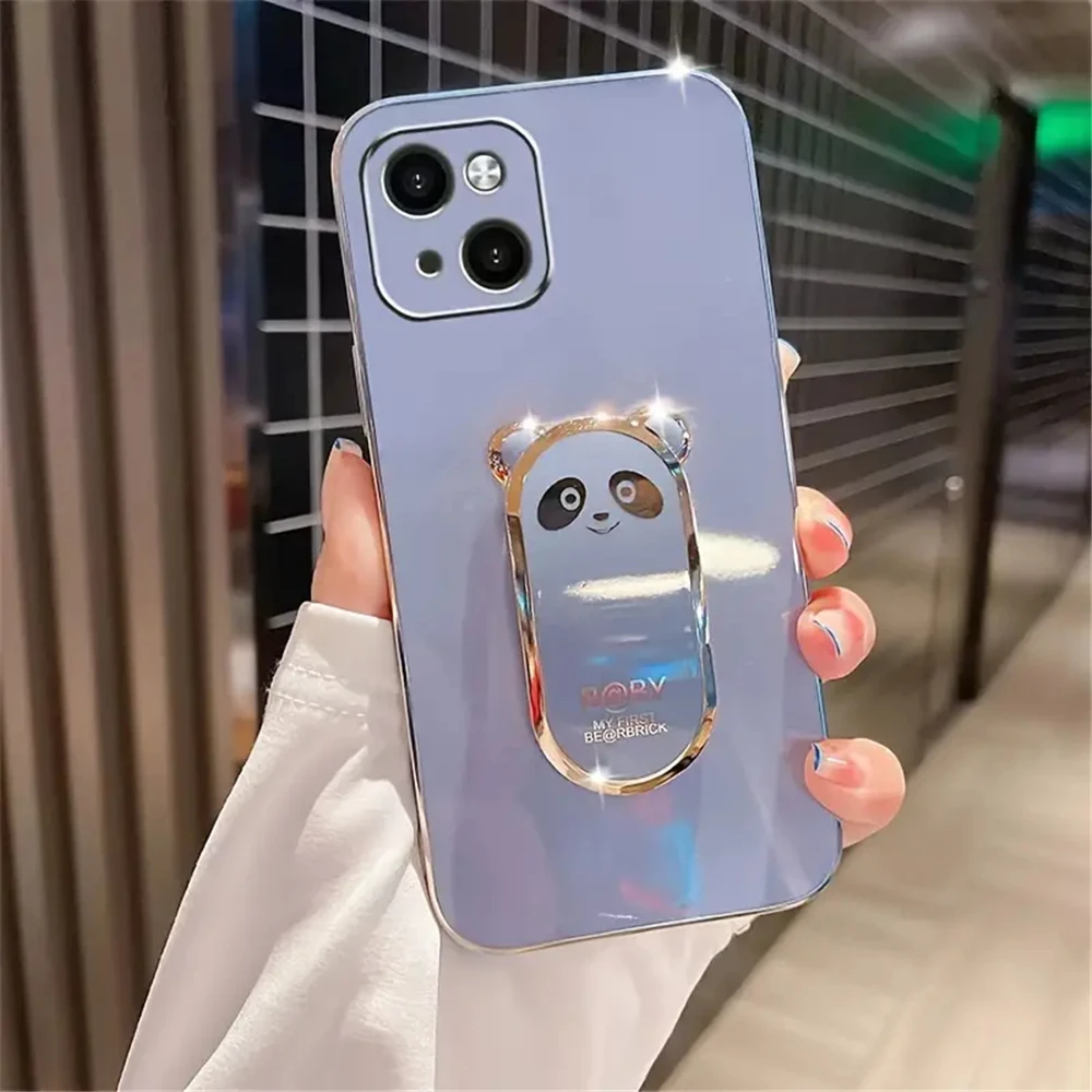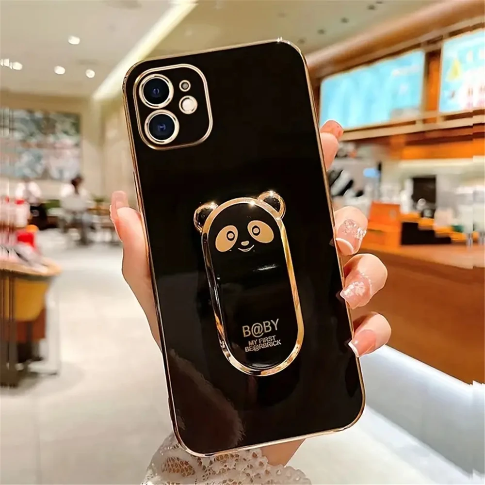 Funda de teléfono con soporte Chapado en Panda 3D para iPhone 11 12 13 14 15 Pro Max 7 8 6 6S Plus 15 X XS XR Max Mini funda de silicona suave