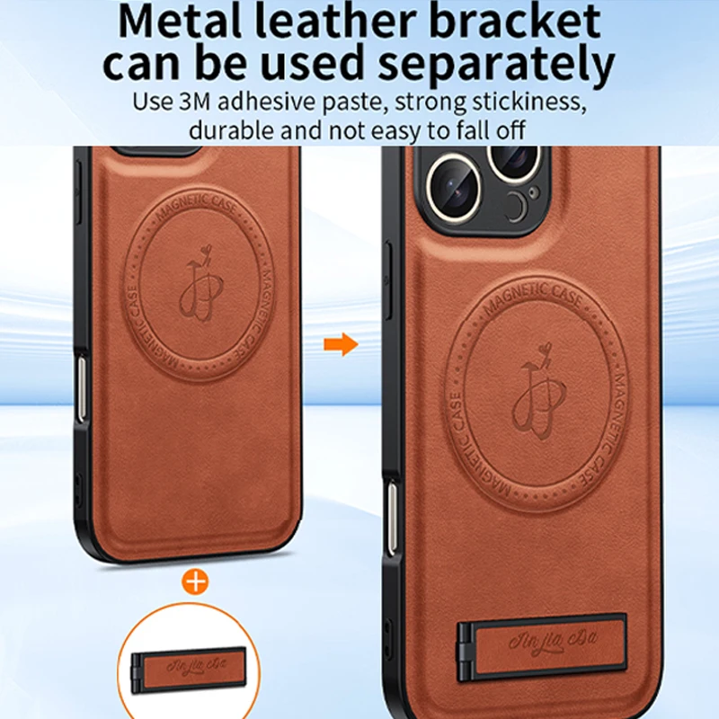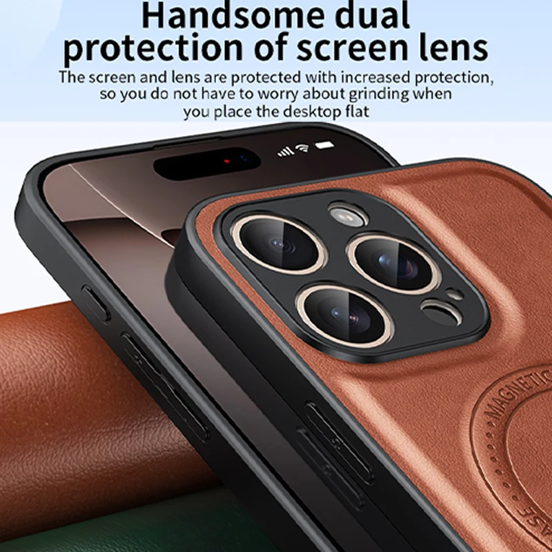 Funda de cuero para teléfono con soporte para iPhone 16 15 14 13 12 Pro Max Plus 16E, fundas protectoras magnéticas para lentes a prueba de golpes