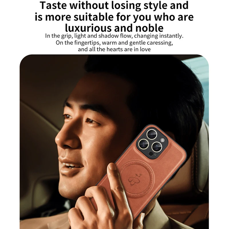 Funda de teléfono con soporte de cuero de negocios para iPhone 16, 15, 14, 13, 12 Pro Max Plus 16E, fundas protectoras magnéticas para lentes a prueba de golpes
