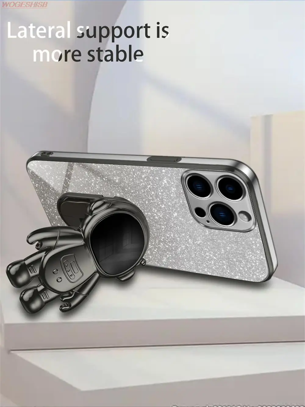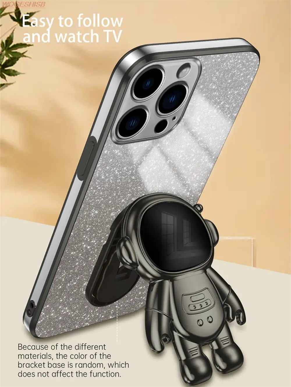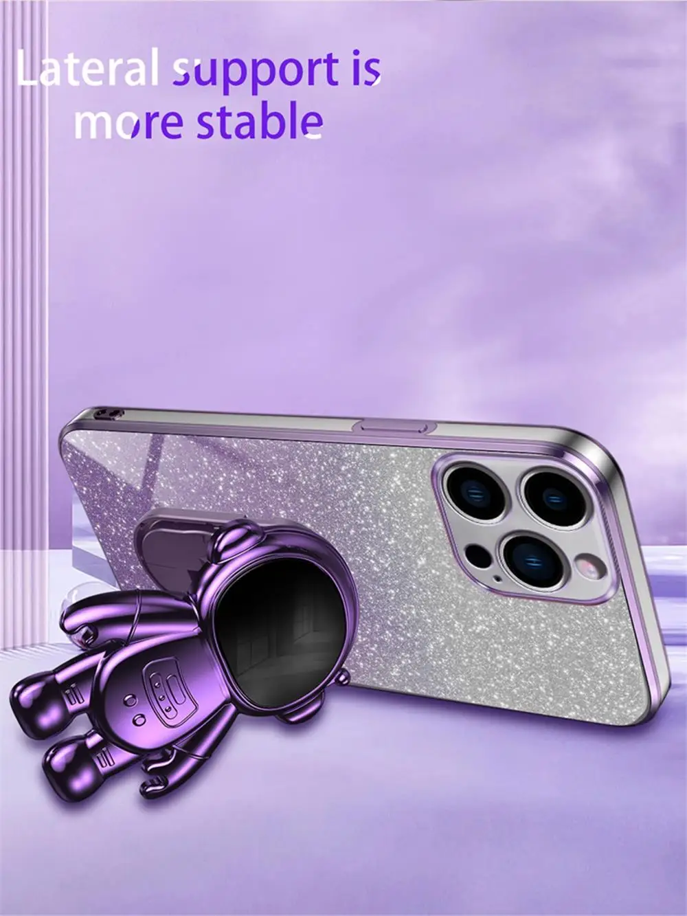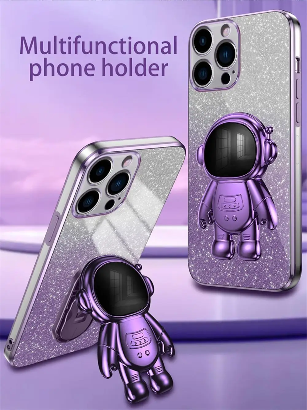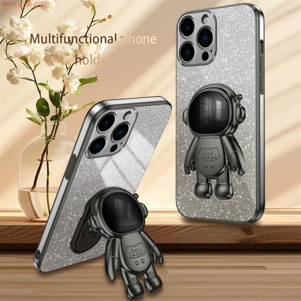 Comprar Funda de teléfono con soporte de electrochapa 3D para astronautas, Fundas suaves cuadradas para iPhone 15, 14, 13, 12, 11 Pro Max, X, Xs Max, XR, 6, 6s, 7, 8 Plus, SE