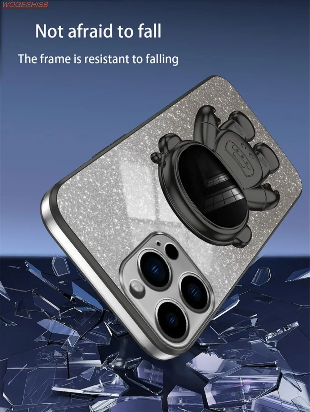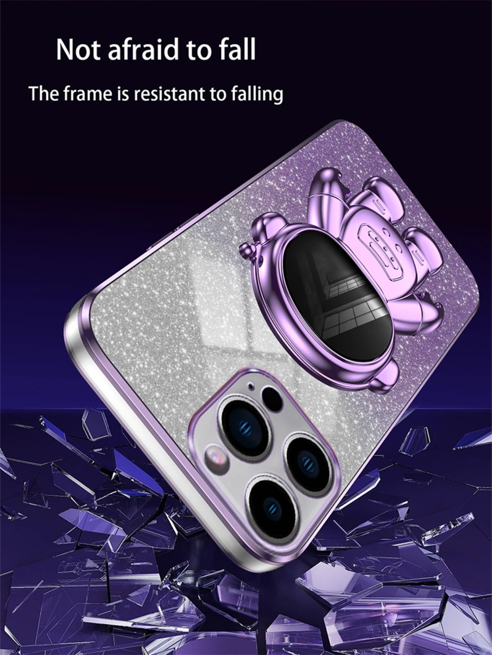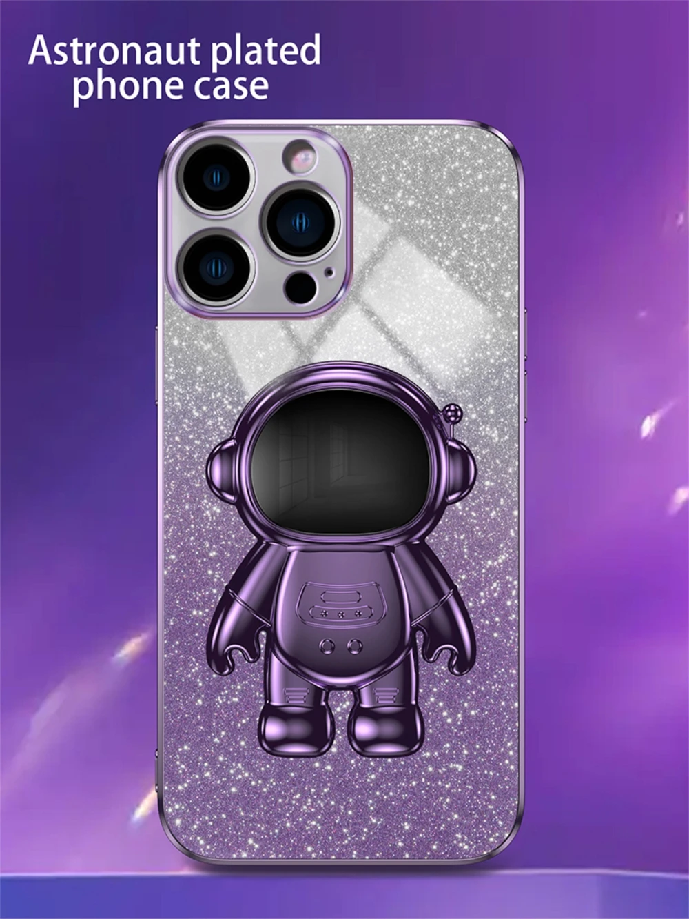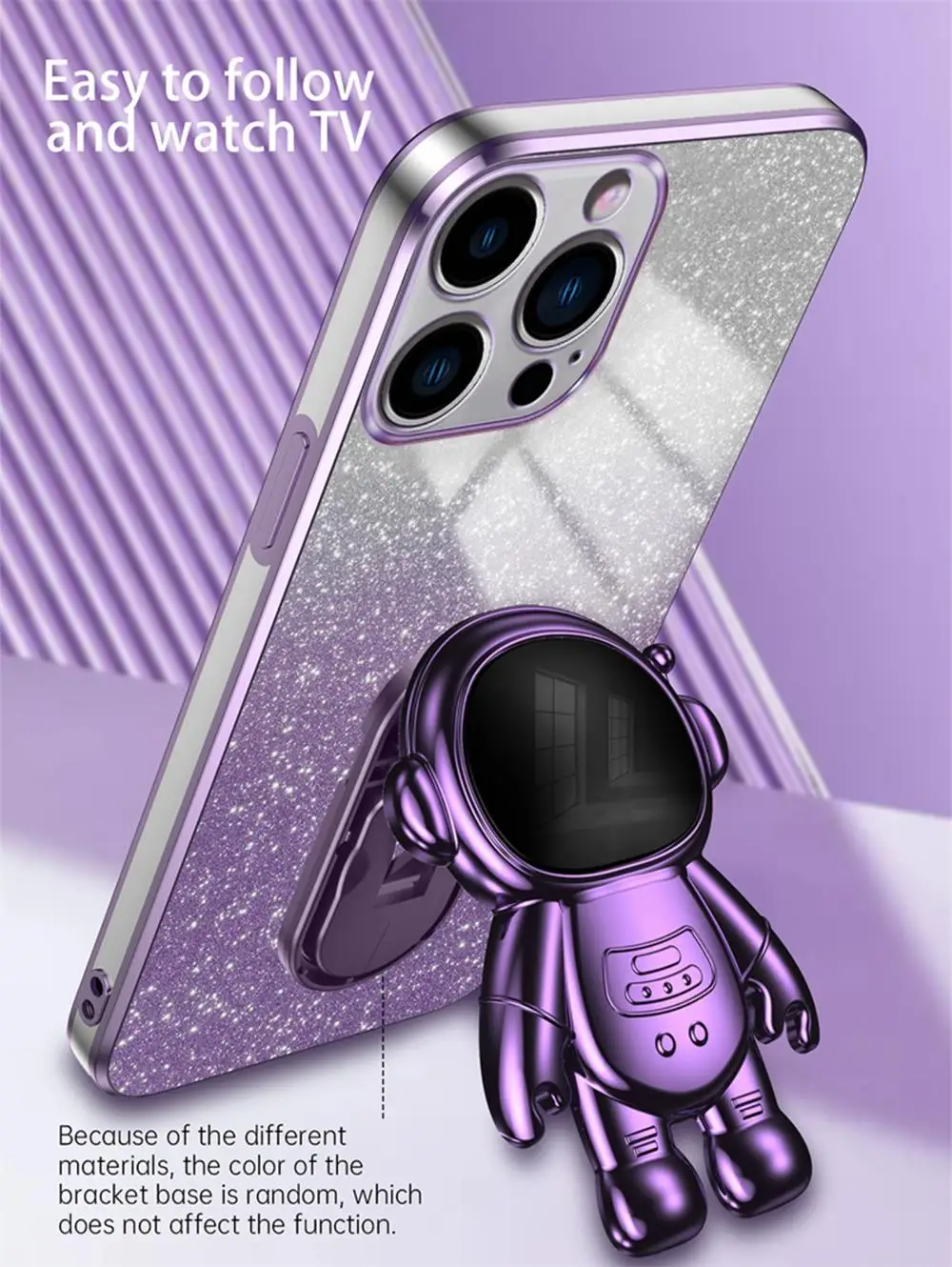 Comprar Funda de teléfono con soporte de electrochapa 3D para astronautas, Fundas suaves cuadradas para iPhone 15, 14, 13, 12, 11 Pro Max, X, Xs Max, XR, 6, 6s, 7, 8 Plus, SE