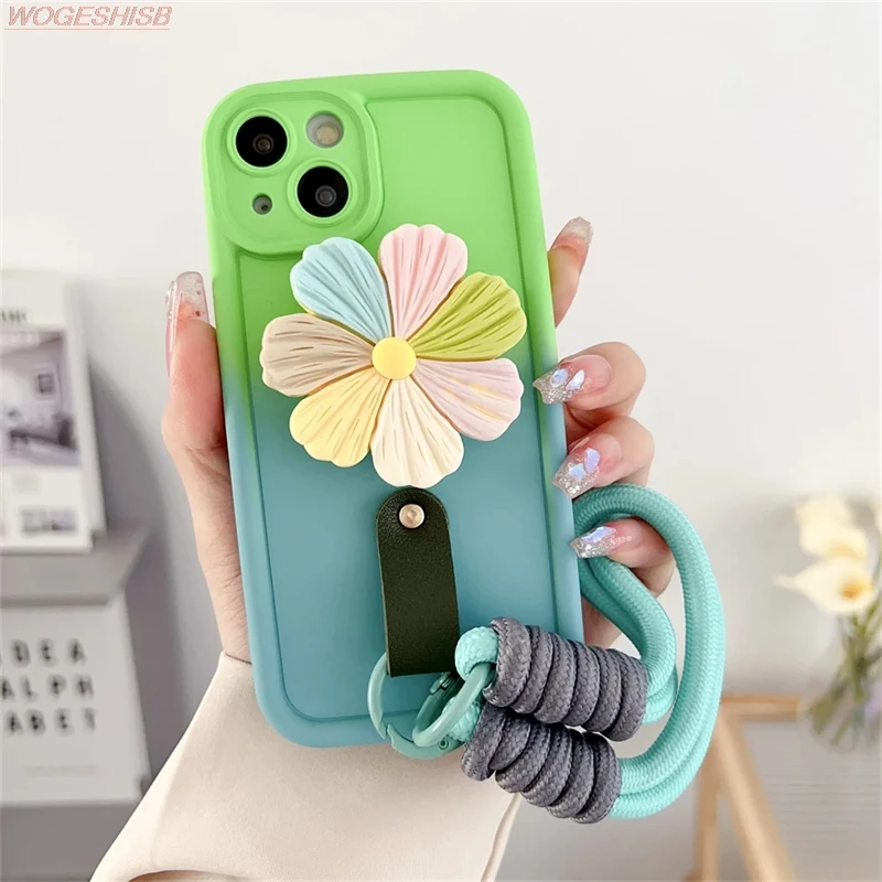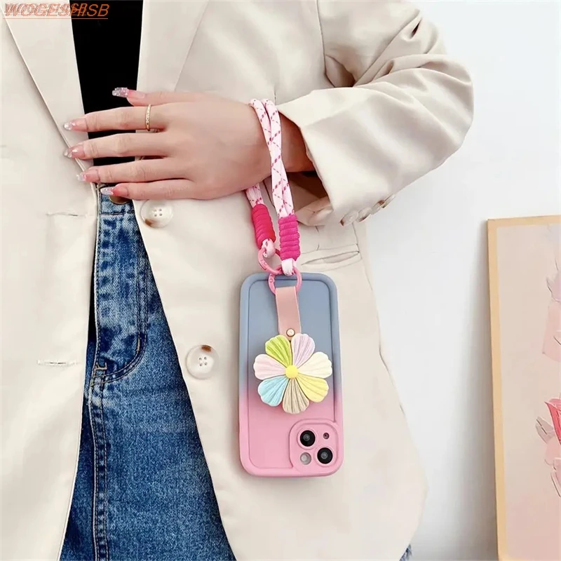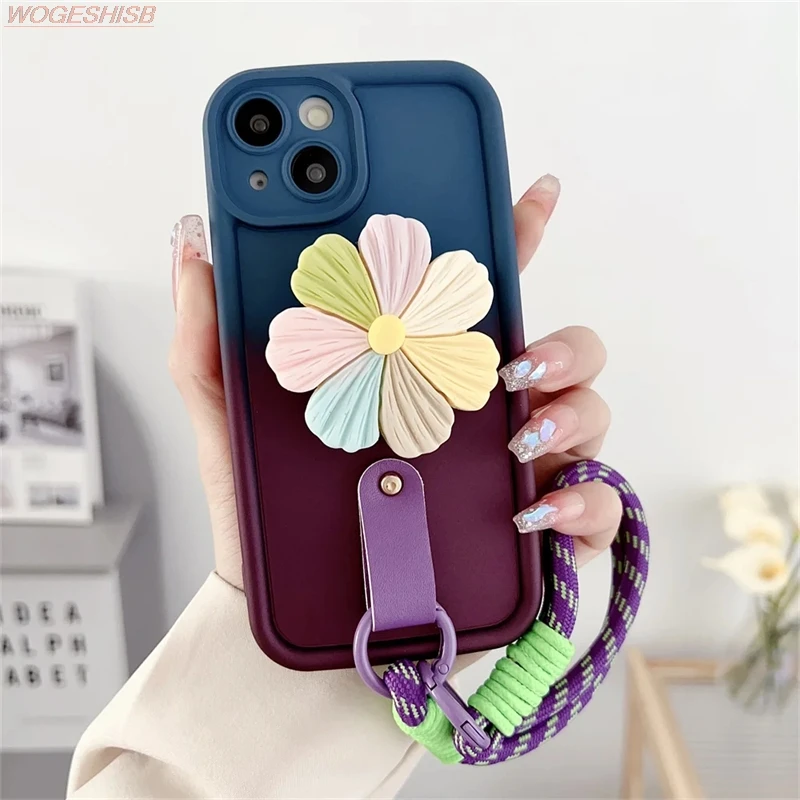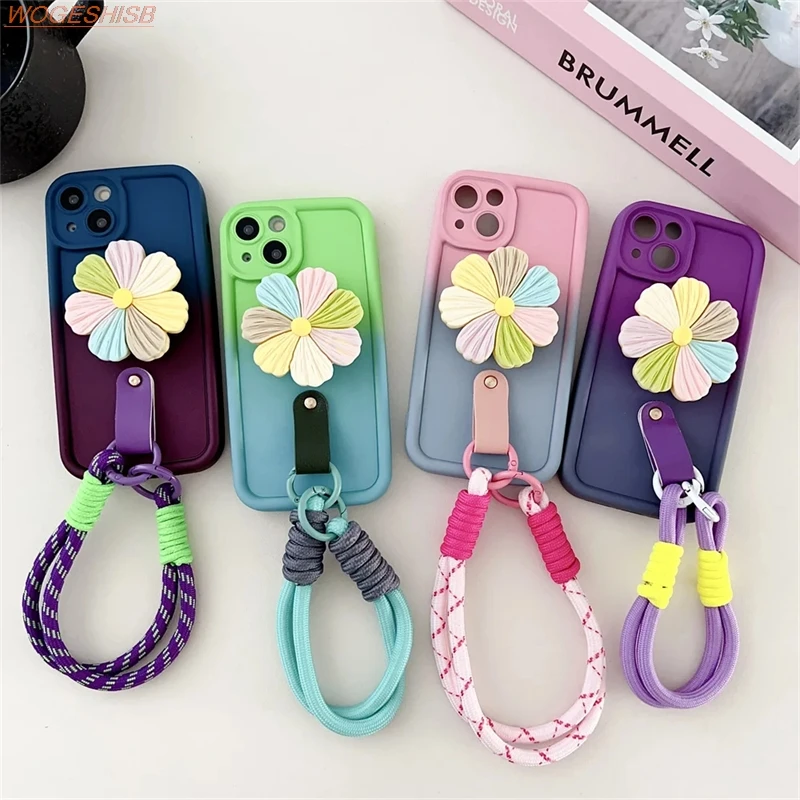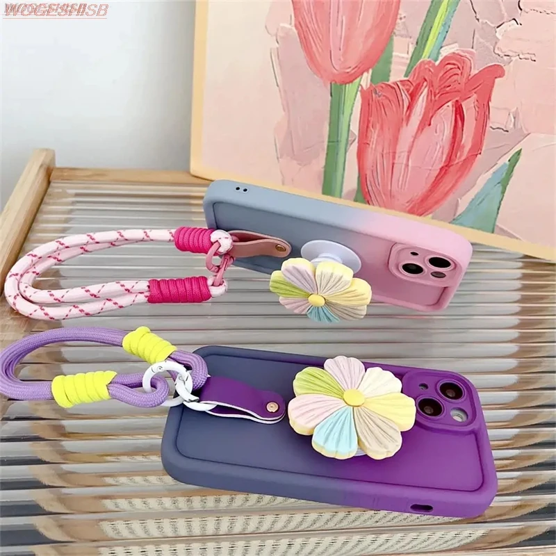 Comprar Funda de teléfono con soporte de flores degradadas para Samsung Galaxy A10s, A20s, A30s, A50, M02s, M04, M11, M12, M22, M32, Correa Floral