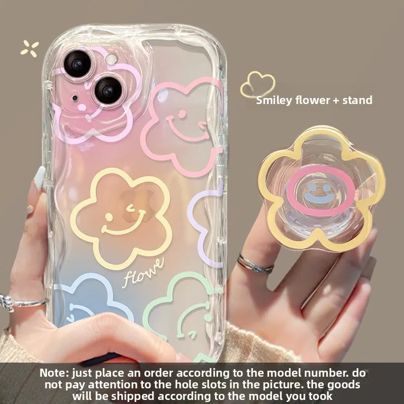 Funda de teléfono ondulada con soporte de flor de sonrisa de Color para iPhone 16 Pro Max 16E 15 Plus 11 12 13 14 SE 2022 funda suave transparente con soporte