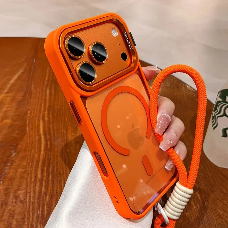 Funda de lujo para teléfono con soporte de lente magnética Magsafe para iPhone 17 16 15 14 13 12 Pro Max Plus, funda de carga inalámbrica con cordón de aire