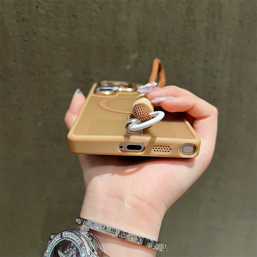 Soporte de lente magnético mate, funda de teléfono con cordón para Samsung S24 S25 Plus S23 Ultra FE A56 A36 A16, cubierta de carga inalámbrica