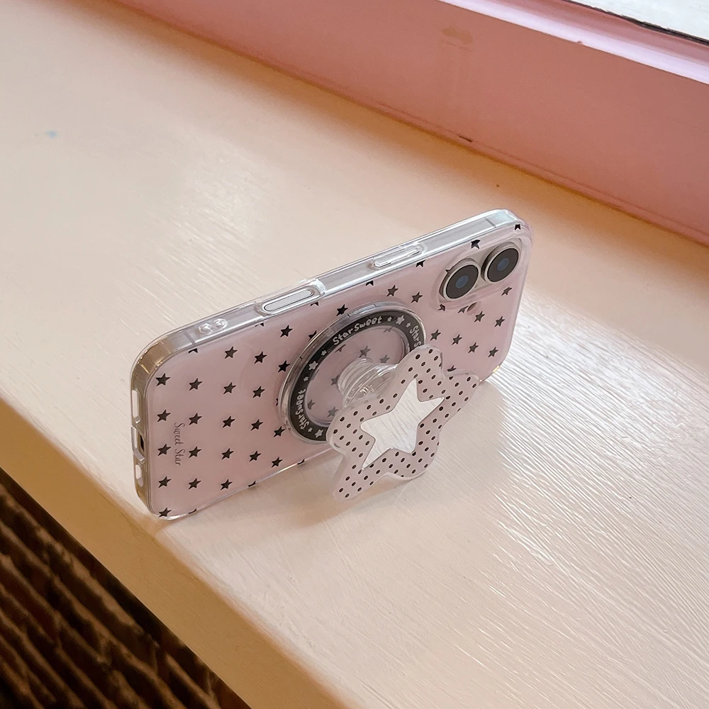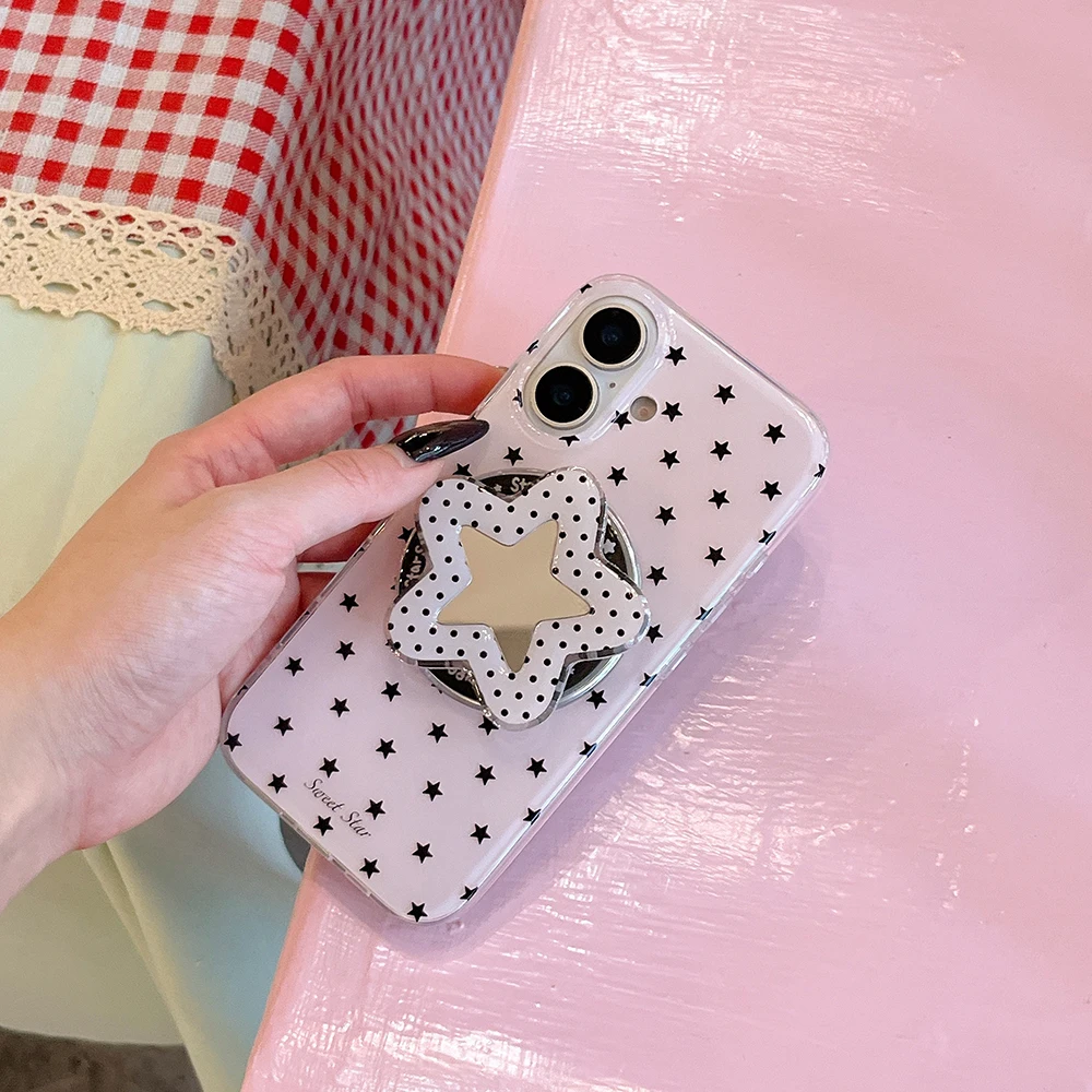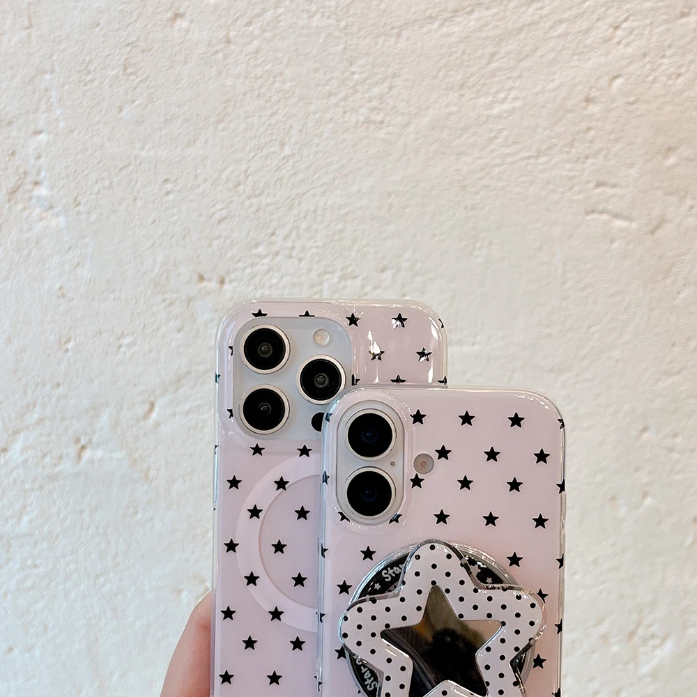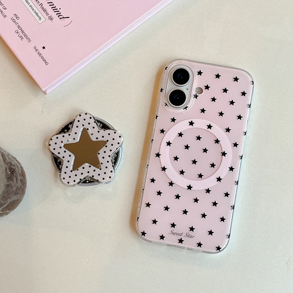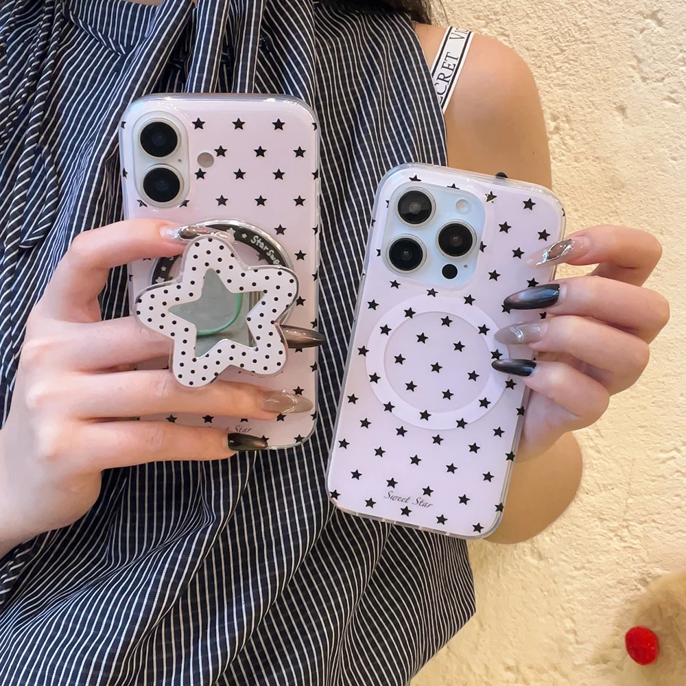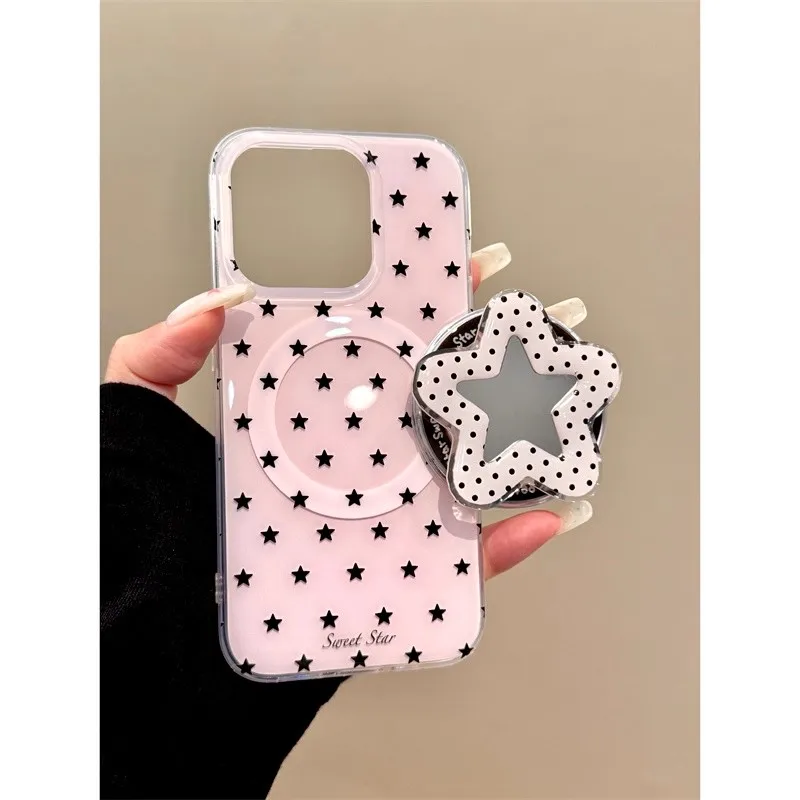 Funda de teléfono con soporte magnético Magsafe con estrellas lindas en 3D para Iphone 16pro 15promax 14 13 Pro Max, funda trasera con espejo para mujer y niña