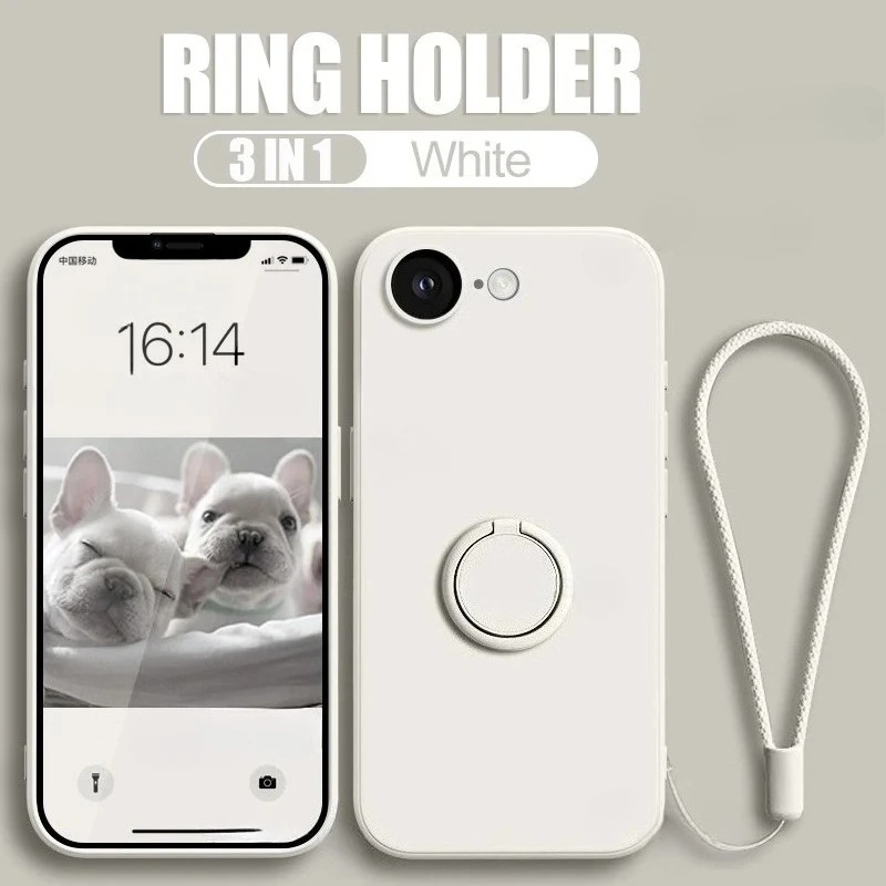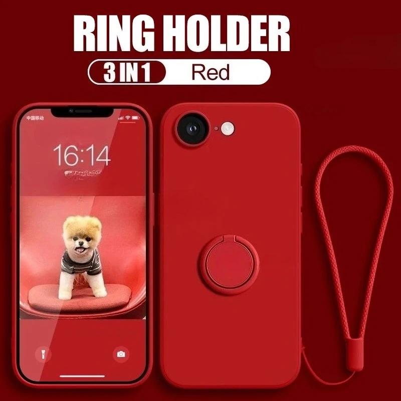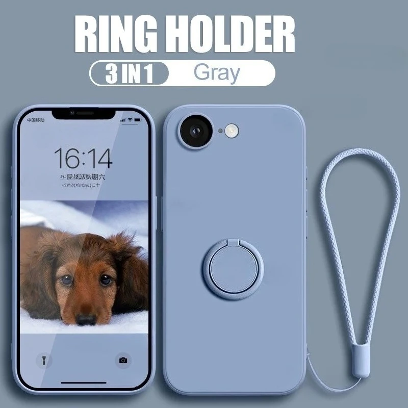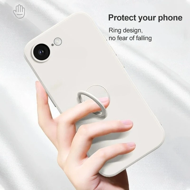 Comprar Funda de teléfono con soporte magnético y anillo de dedo de silicona líquida para iPhone 16 16e 15 14 13 12 11 Plus Pro Max, funda protectora a prueba de golpes