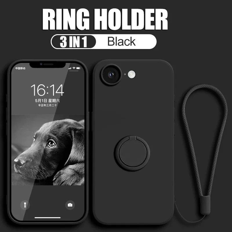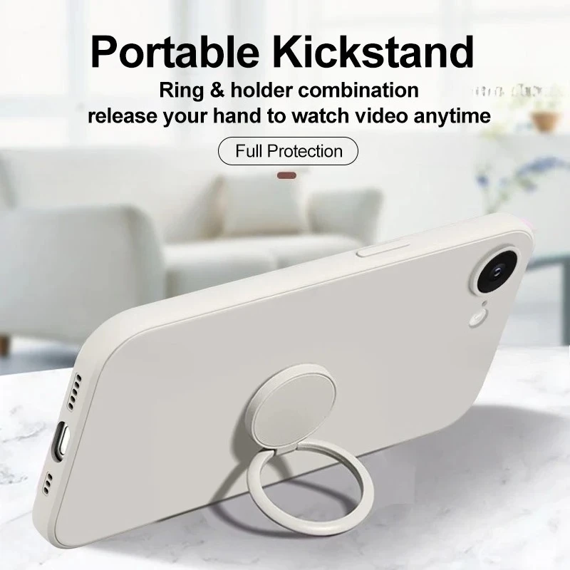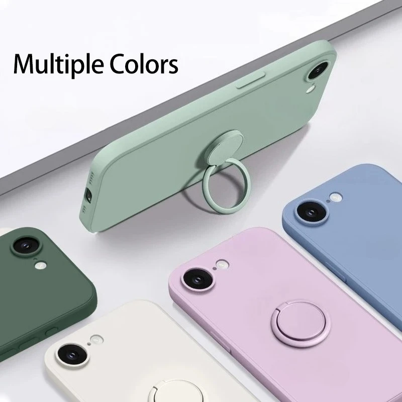 Funda de teléfono con soporte magnético y anillo de dedo de silicona líquida para iPhone 16 16e 15 14 13 12 11 Plus Pro Max, funda protectora a prueba de golpes