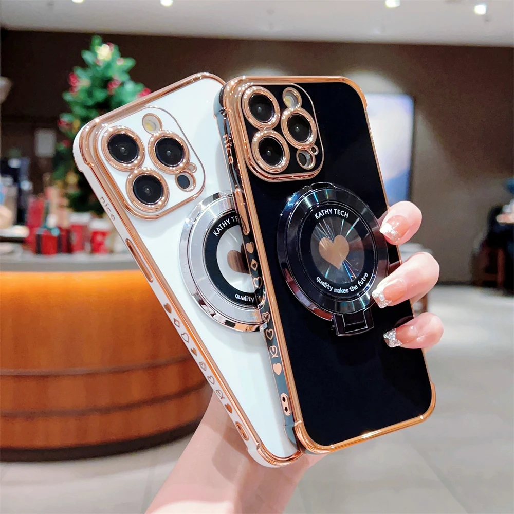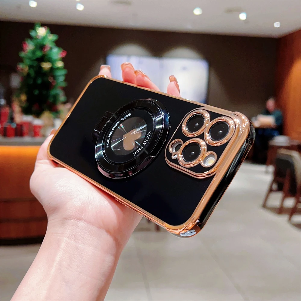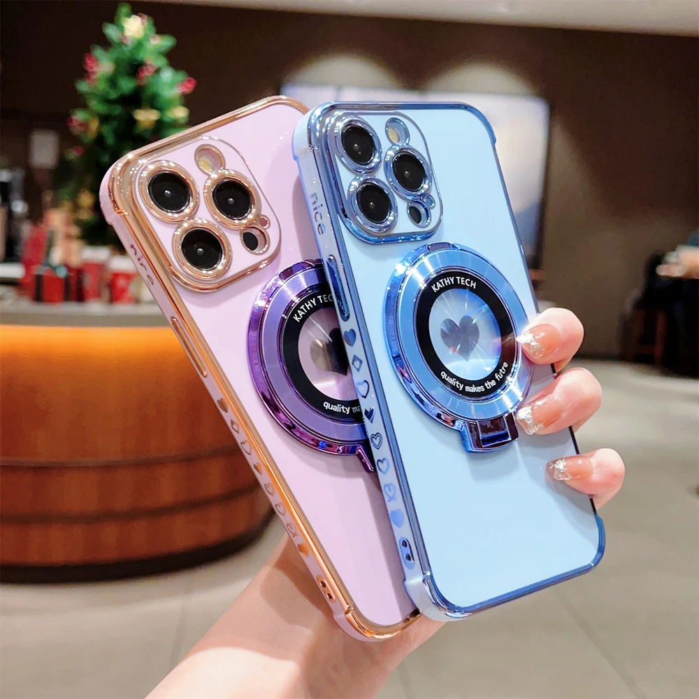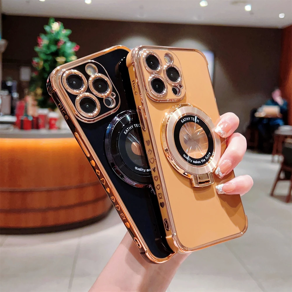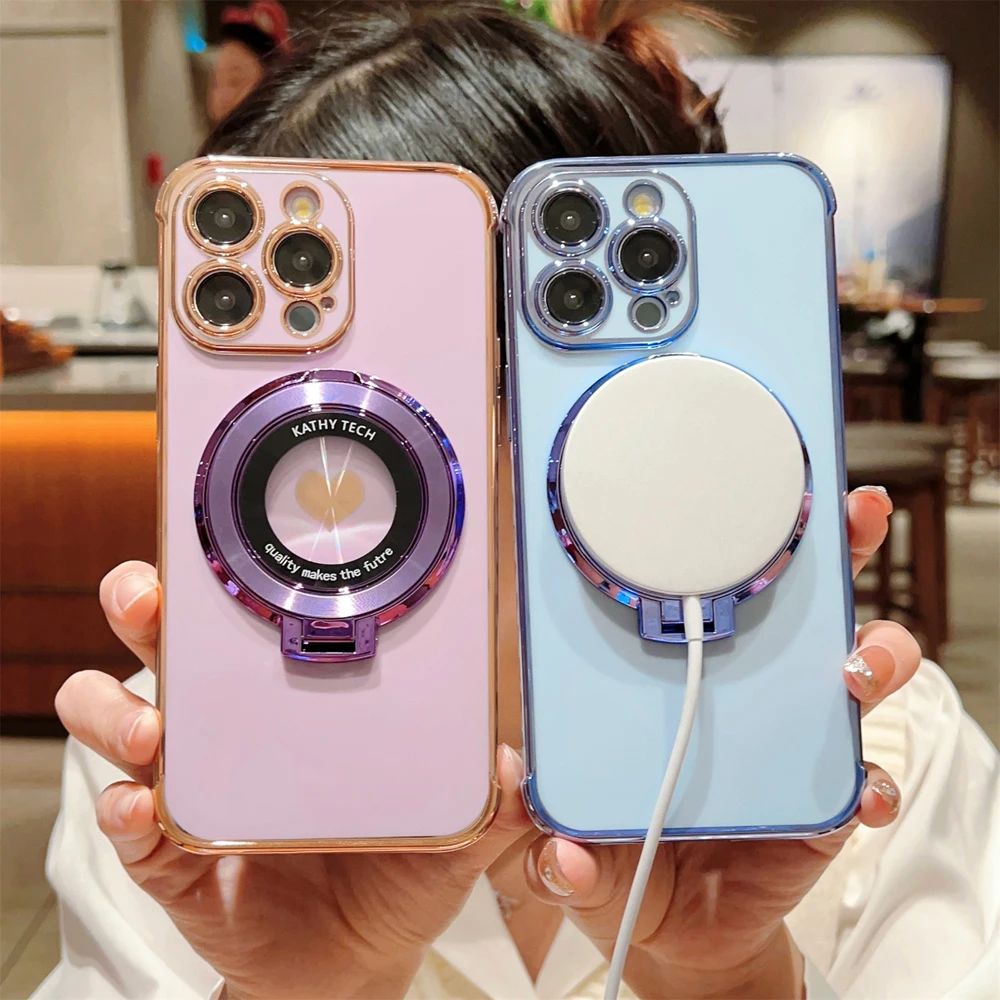 Comprar Funda de teléfono con soporte magnético Invisible para iPhone 15 Pro Max 11 12 13 14 Plus XS Max XR X 7 8 Plus, protección de cámara, cubierta suave