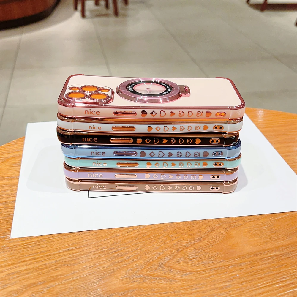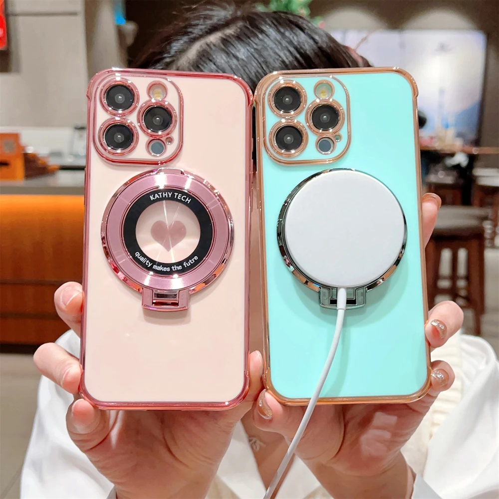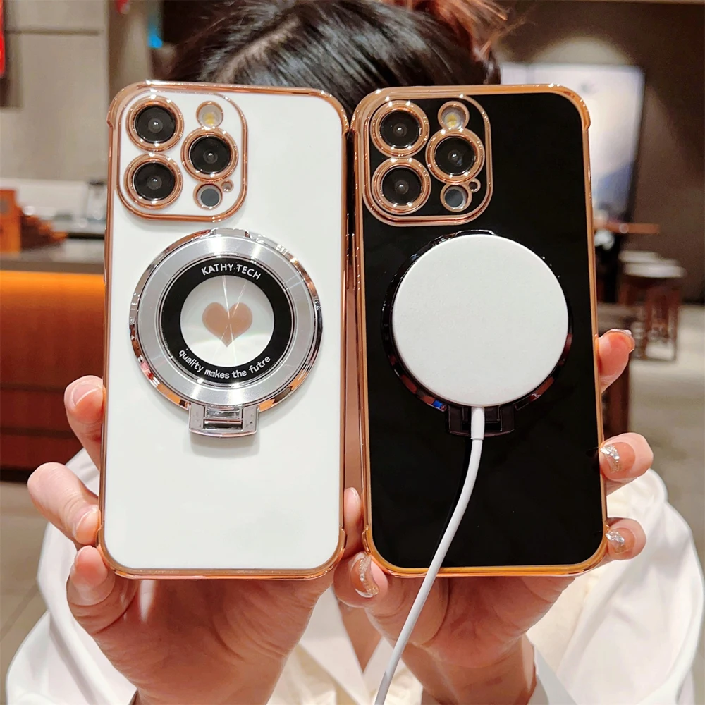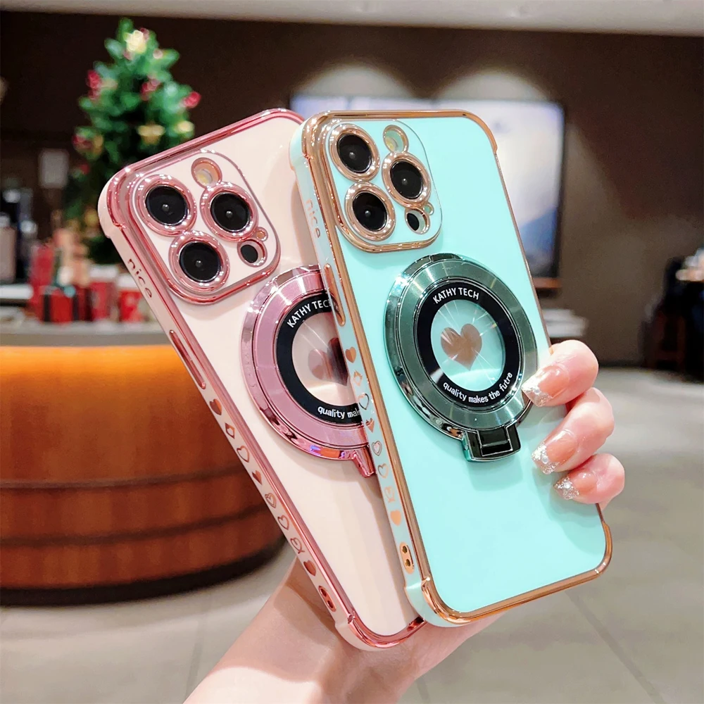 Comprar Funda de teléfono con soporte magnético Invisible para iPhone 15 Pro Max 11 12 13 14 Plus XS Max XR X 7 8 Plus, protección de cámara, cubierta suave