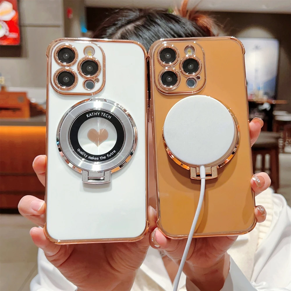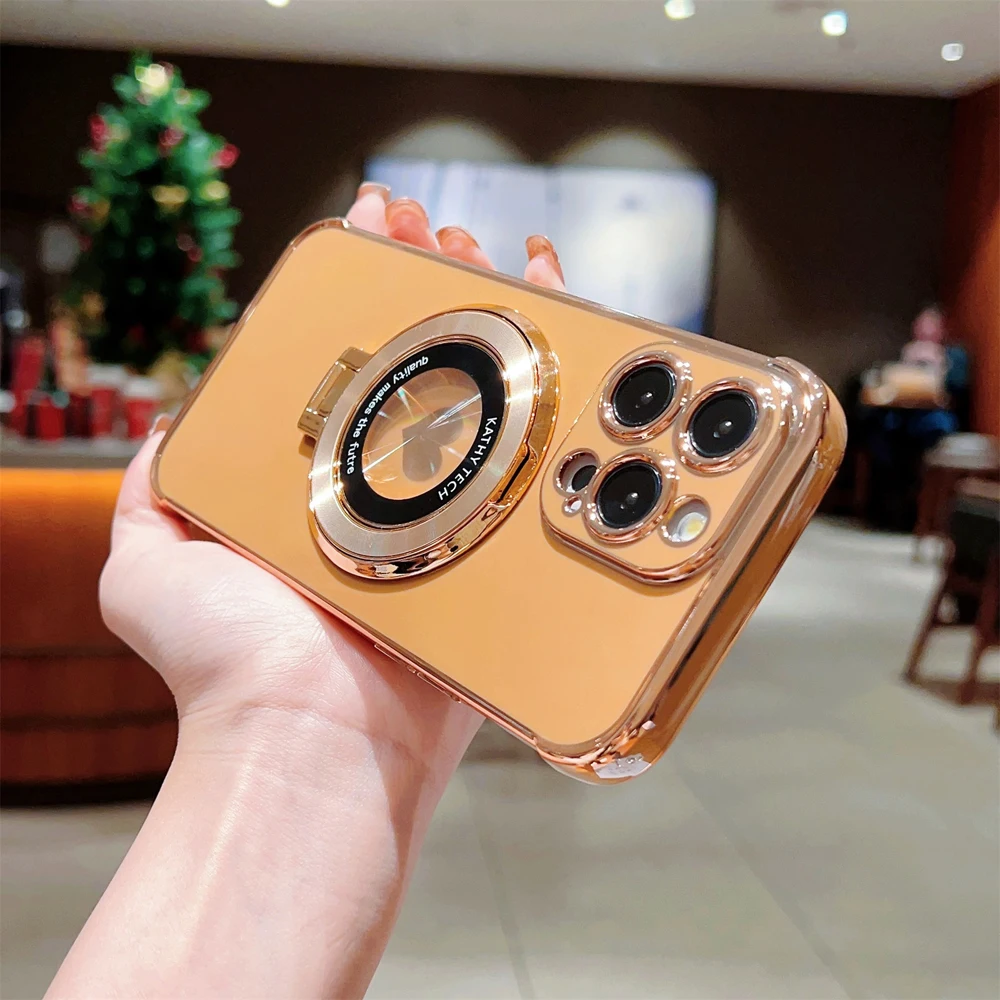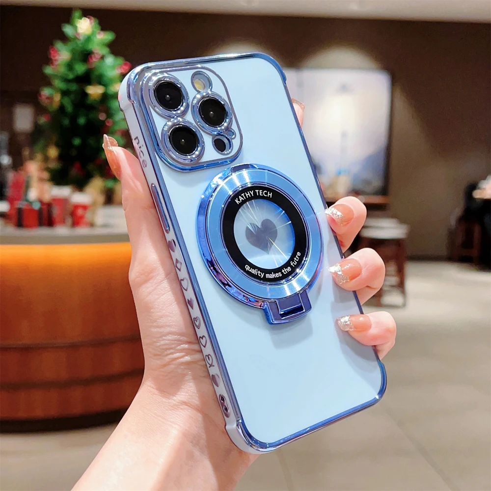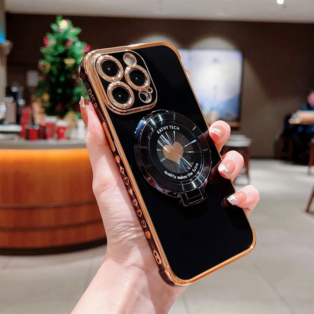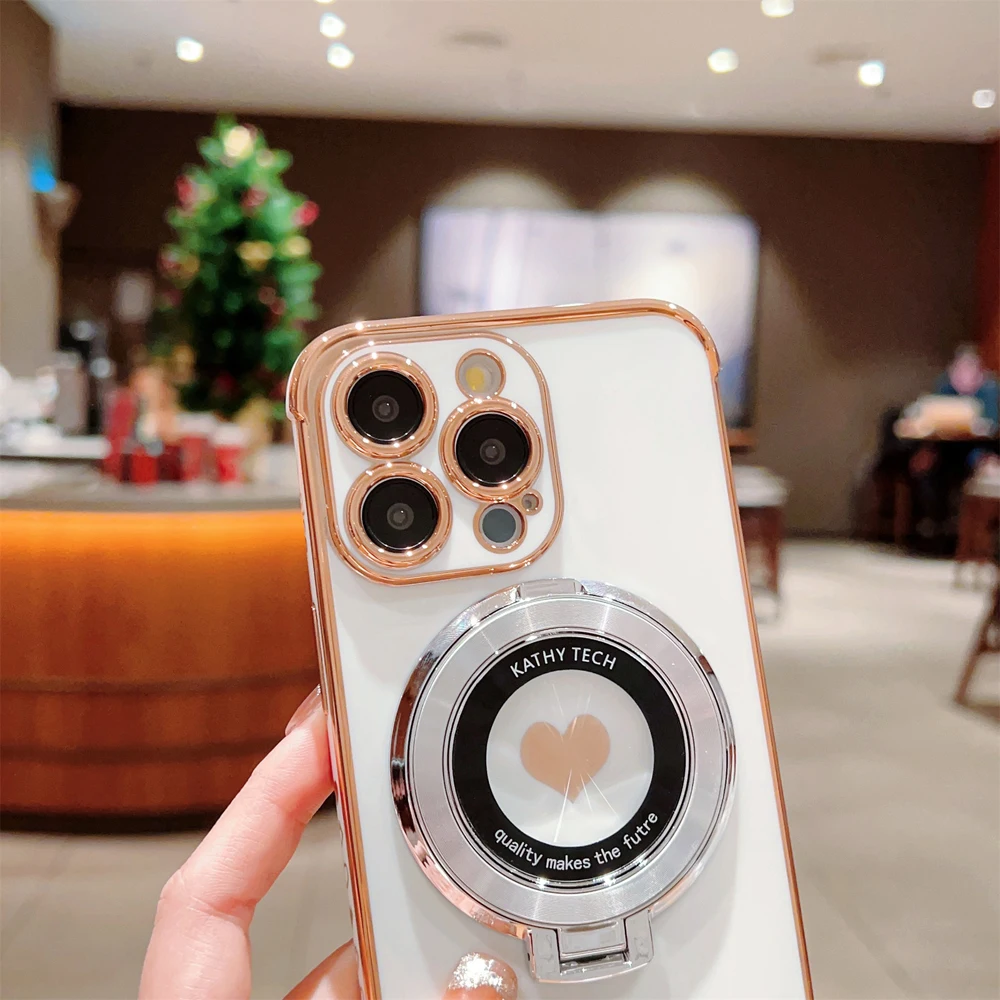 Comprar Funda de teléfono con soporte magnético Invisible para iPhone 15 Pro Max 11 12 13 14 Plus XS Max XR X 7 8 Plus, protección de cámara, cubierta suave