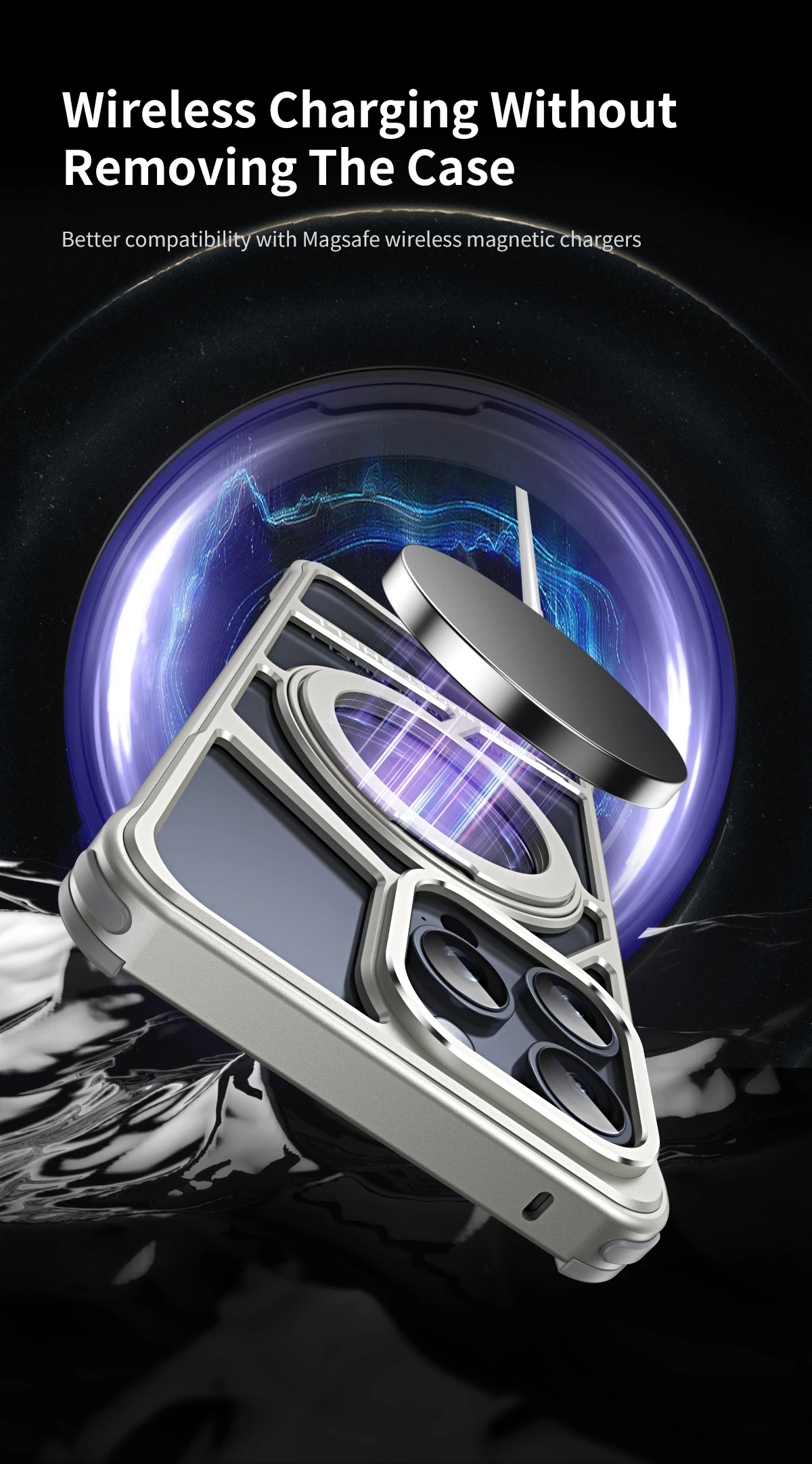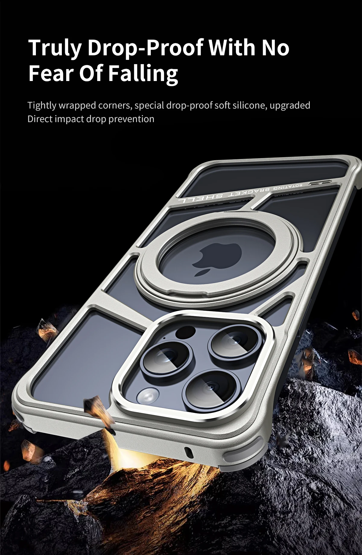 Funda de teléfono con soporte magnético sin marco de aleación de aluminio para iPhone 16 15 14 Pro Max Magsafe, cubierta a prueba de golpes con disipación de calor de Metal
