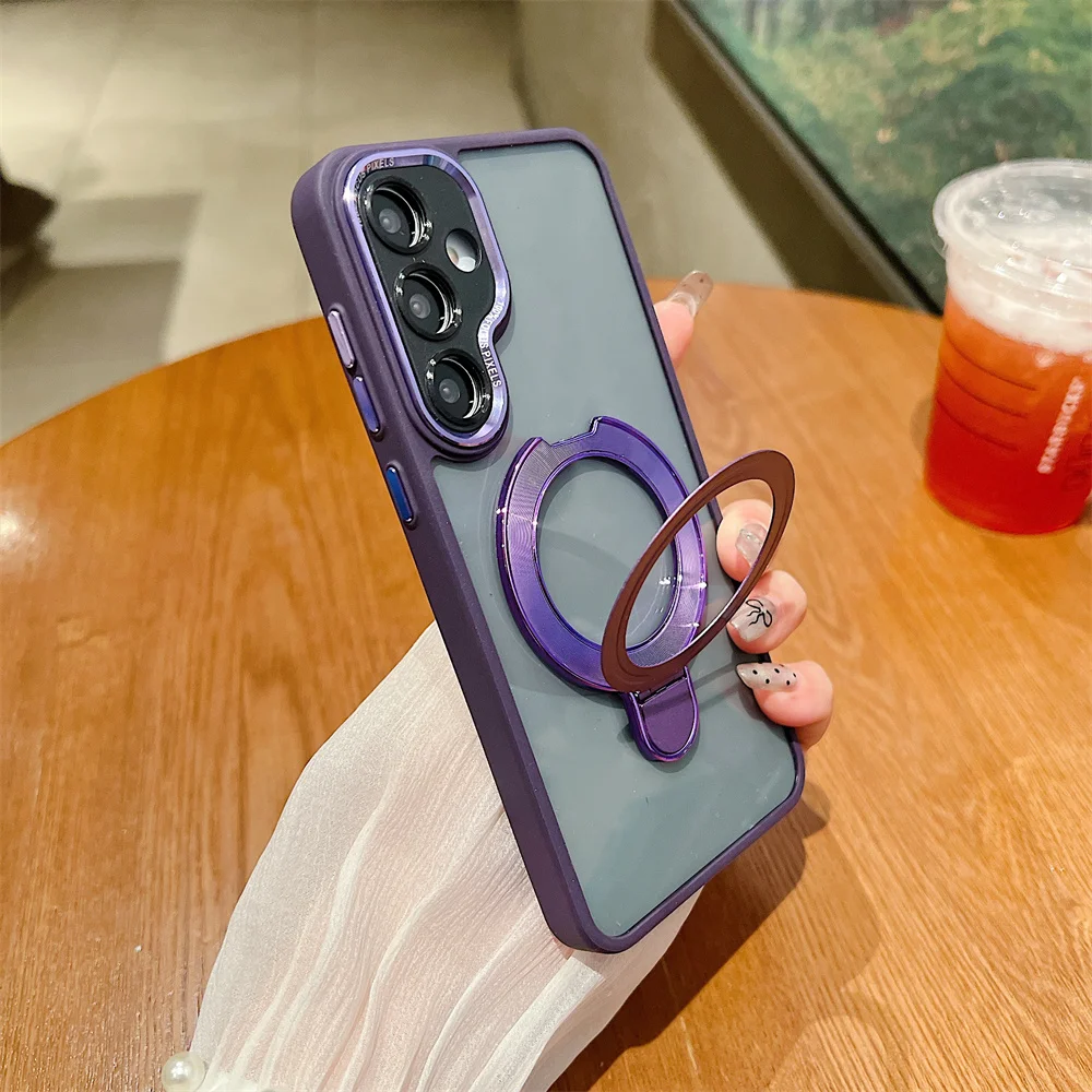 Funda de lujo para teléfono con soporte magnético de Metal Magsafe para Samsung S24 Ultra S23 Plus A55 A54 A35 A34 A25 A15 A14 A13 A12 A05