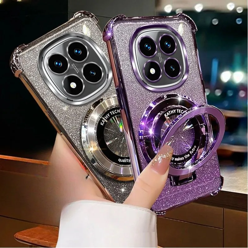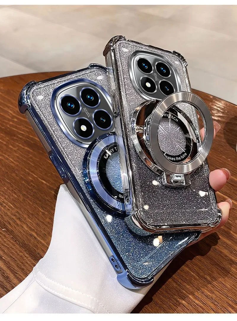 Funda de teléfono con soporte magnético de pulsera de cristal para iPhone X XS Max XR 7 8 6 6S Plus SE 2020 funda suave de silicona con purpurina a prueba de golpes