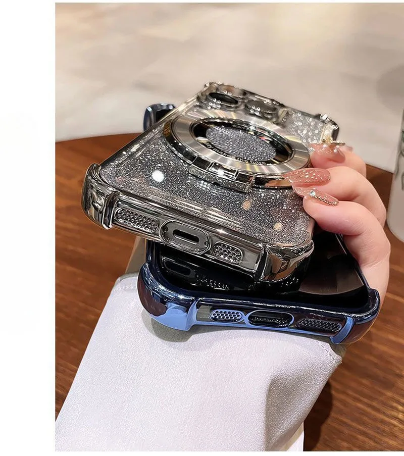 Pulsera de cristal soporte magnético funda de teléfono para iPhone X XS Max XR 7 8 6 6S Plus SE 2020 funda suave de silicona con purpurina a prueba de golpes