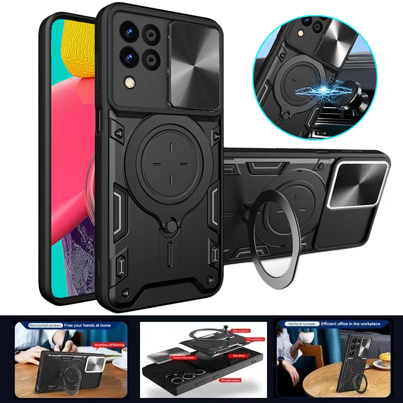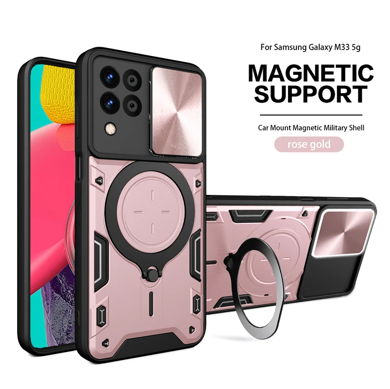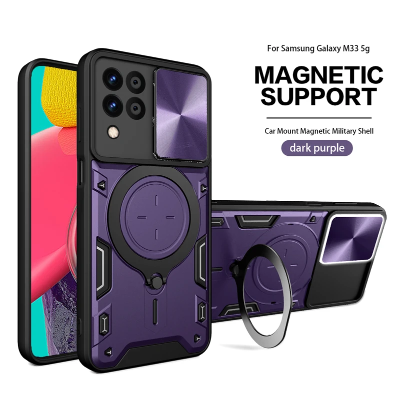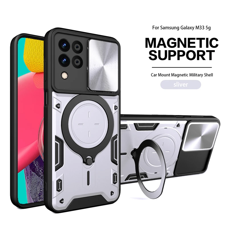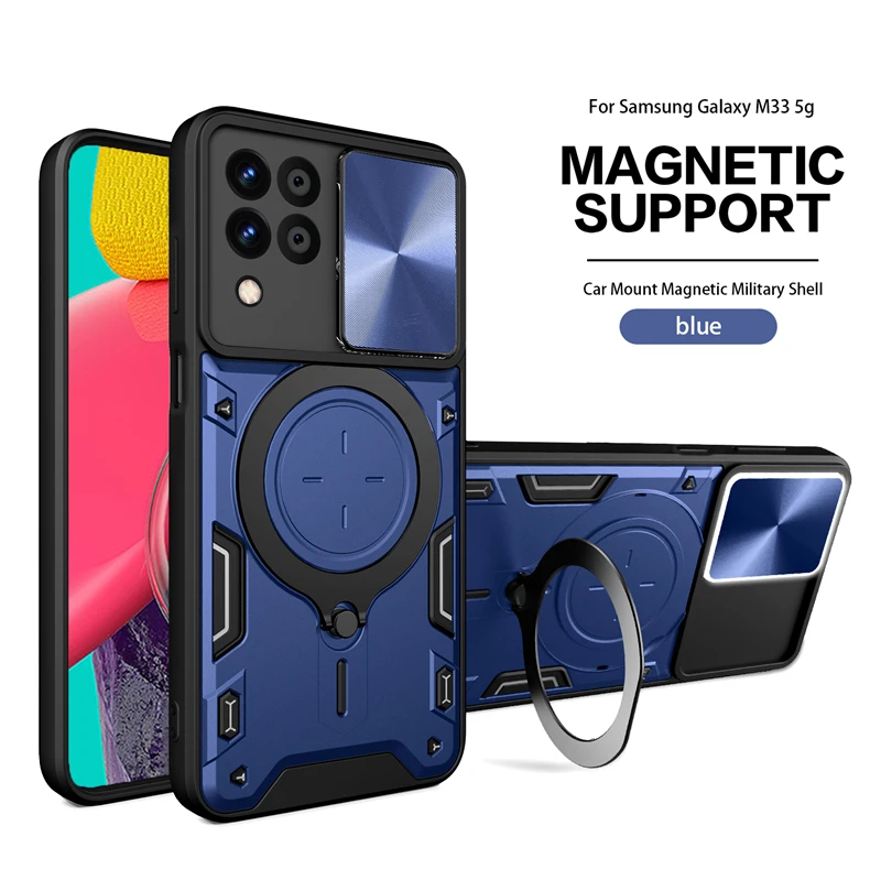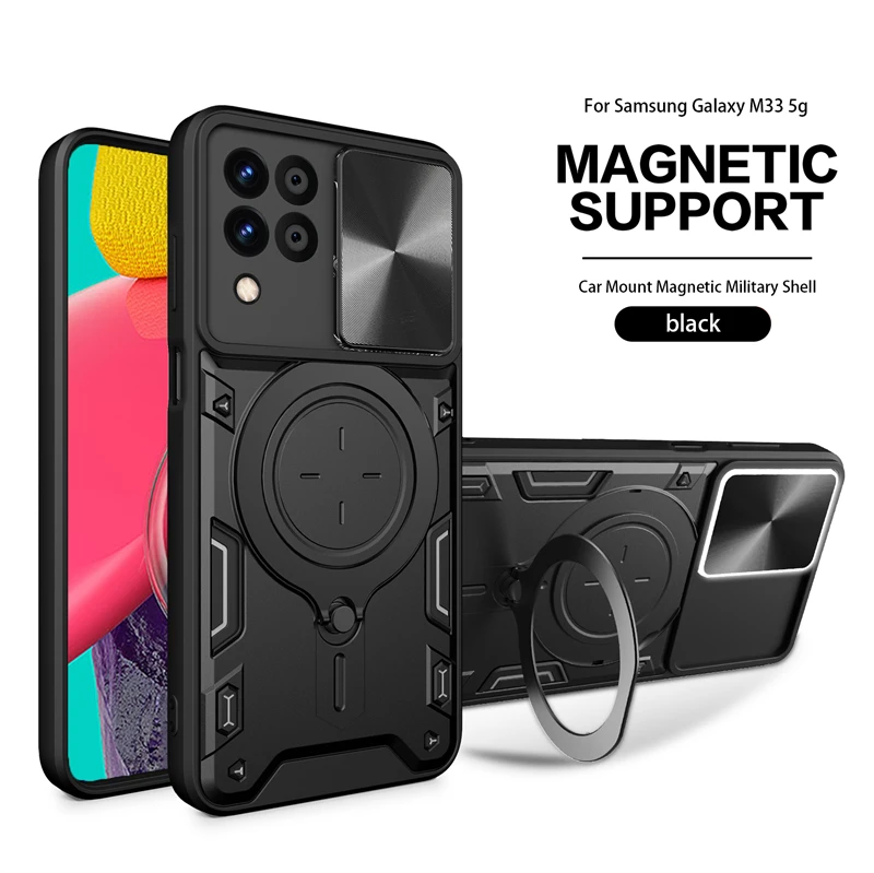 Funda de teléfono con soporte magnético para Samsung Galaxy M33 5G, carcasa trasera con cámara deslizante, armadura de coche, para Samung Sumsung M33 5G M 33 2022