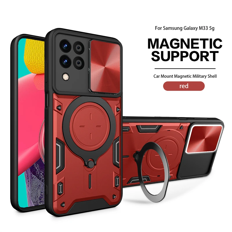 Comprar Funda de teléfono con soporte magnético para Samsung Galaxy M33 5G, carcasa trasera con cámara deslizante, armadura de coche, para Samung Sumsung M33 5G M 33 2022