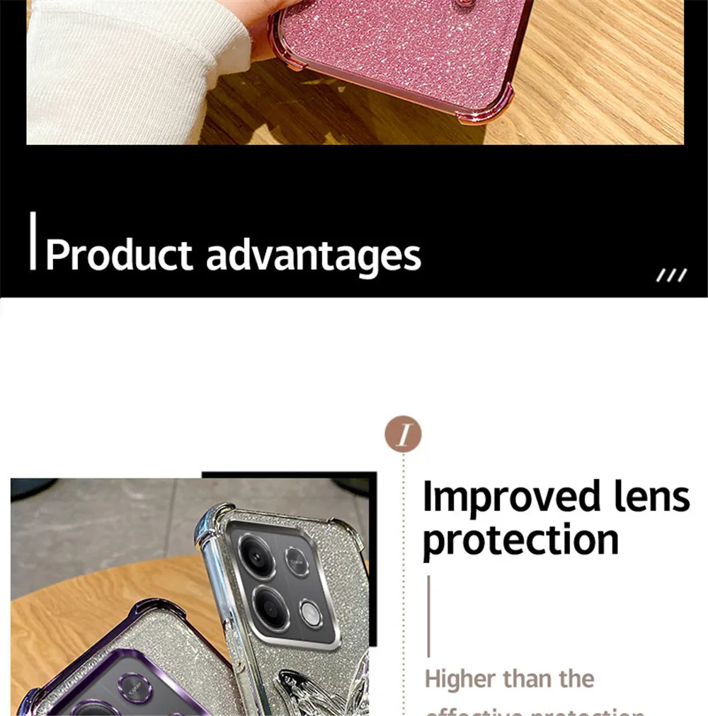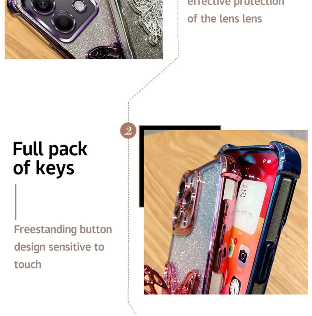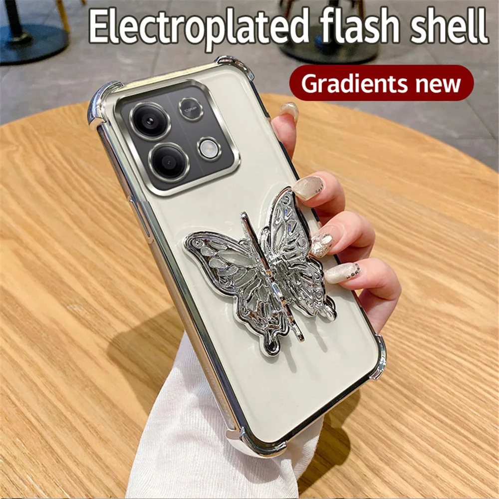 Funda de teléfono con soporte de mariposa a prueba de golpes para Xiaomi Redmi Note 14 Pro Plus 14C 4G 5G 14T POCO X7 Pro, funda de silicona con brillo degradado