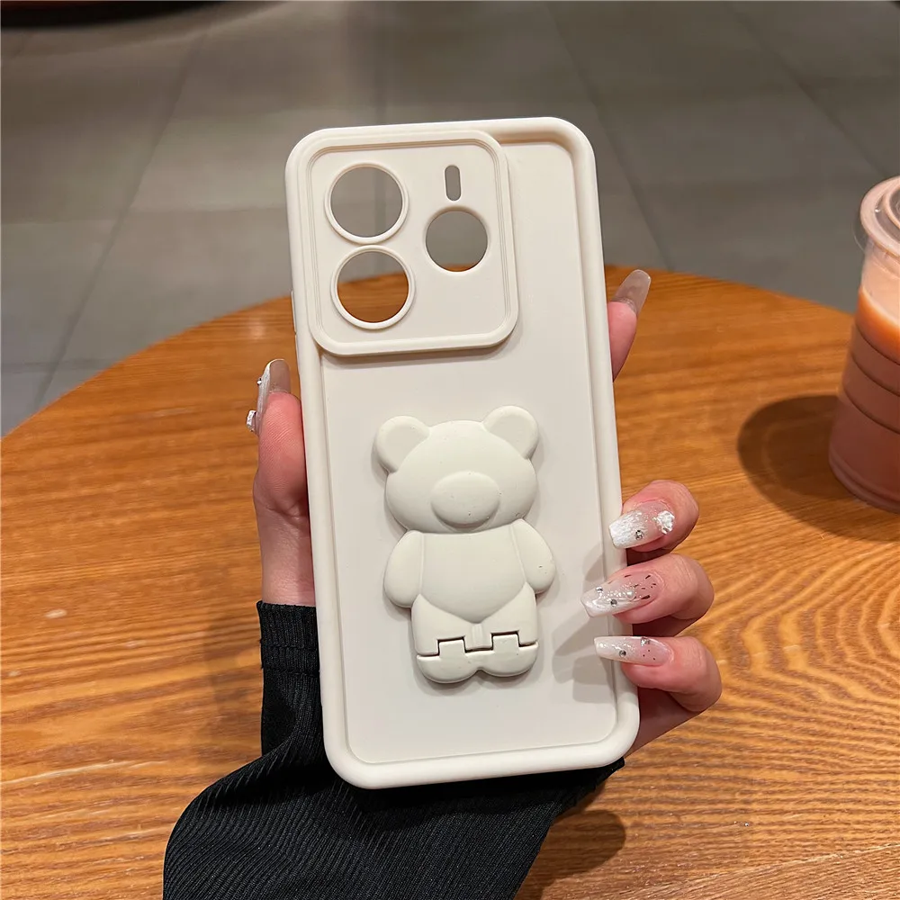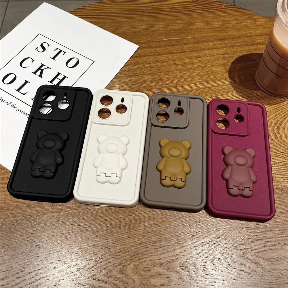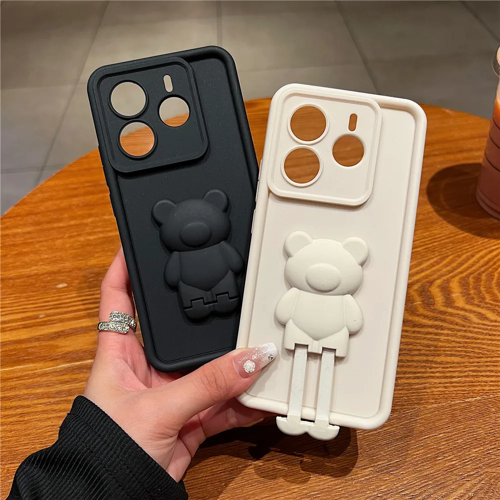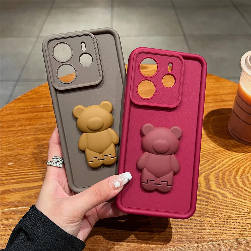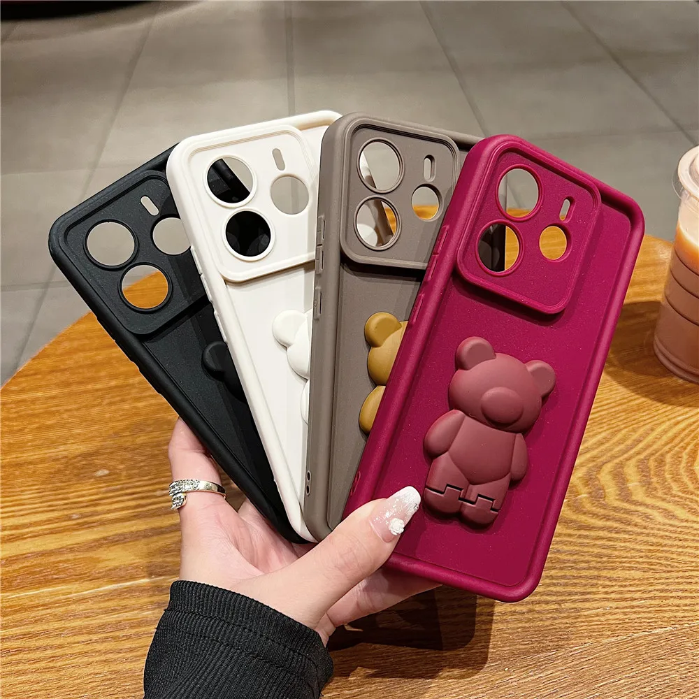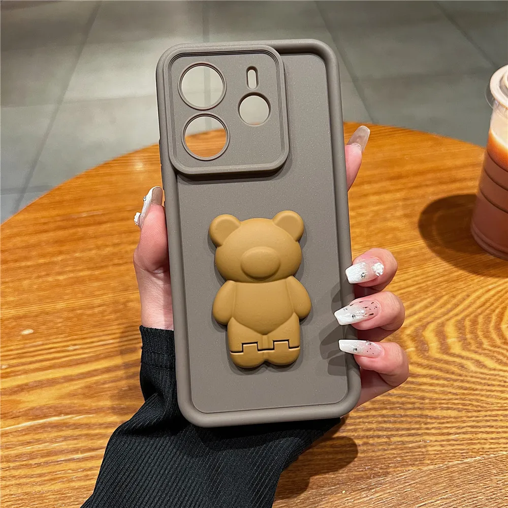 Funda de teléfono con soporte de oso bonito para Xiaomi Poco X7 X6 Pro M6 F6 X5 X3 F7 Ultra POCO C65 C75 cubierta de soporte de silicona a prueba de golpes