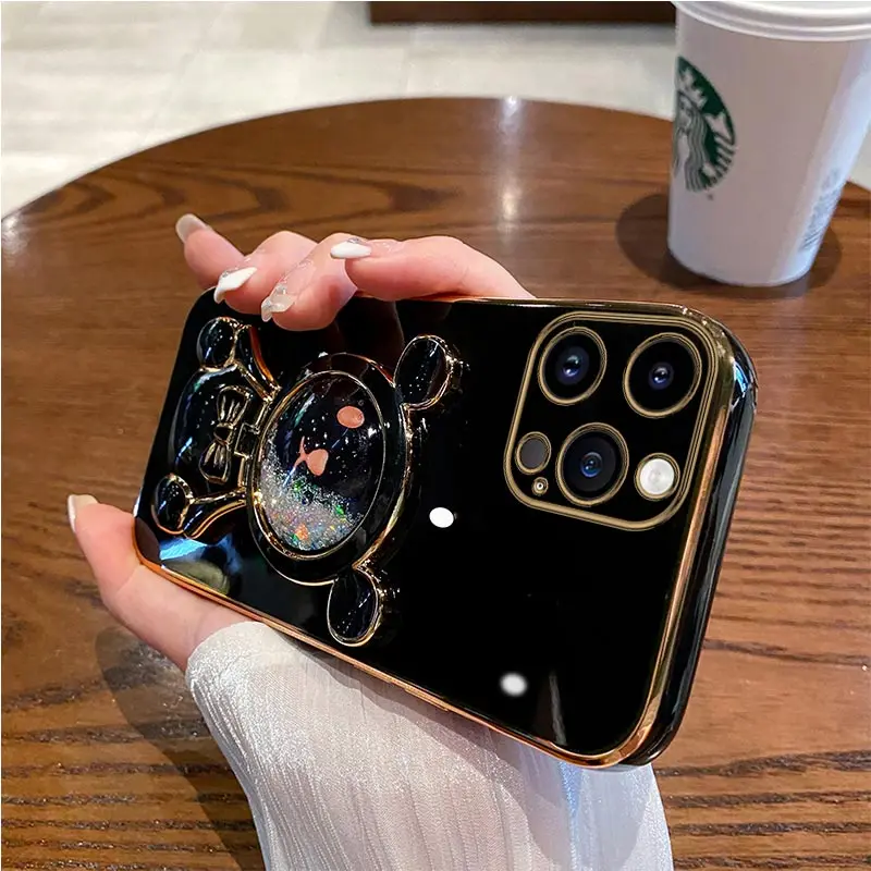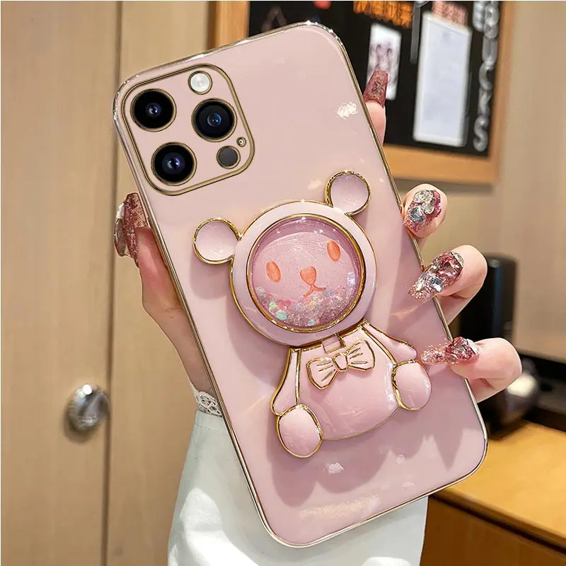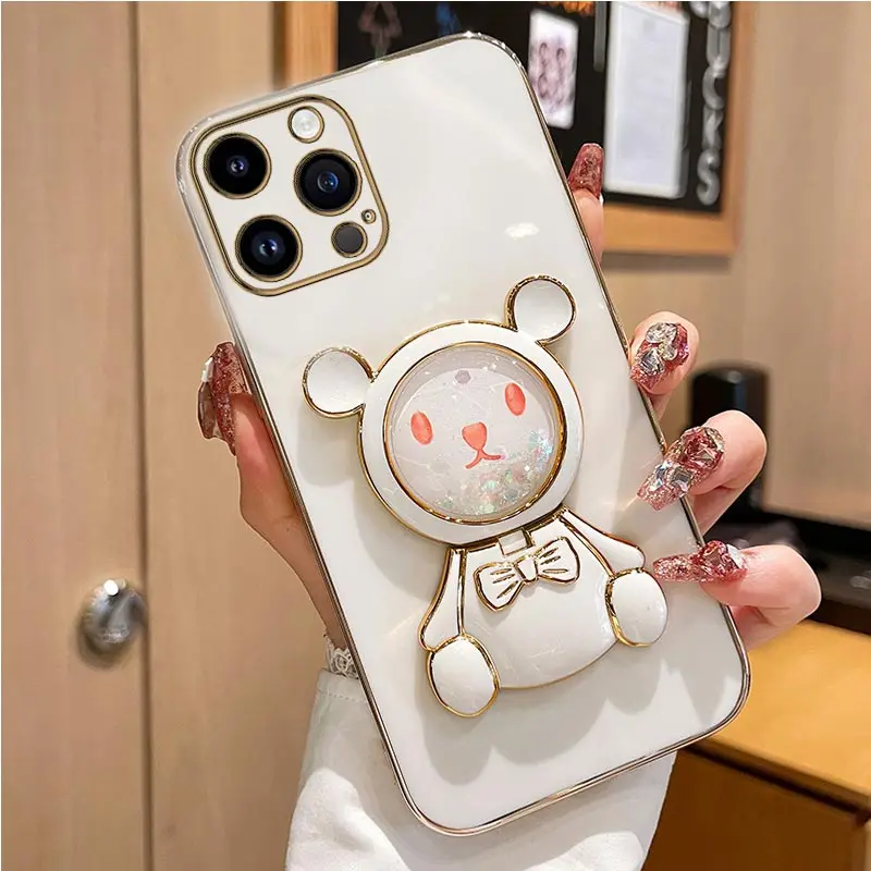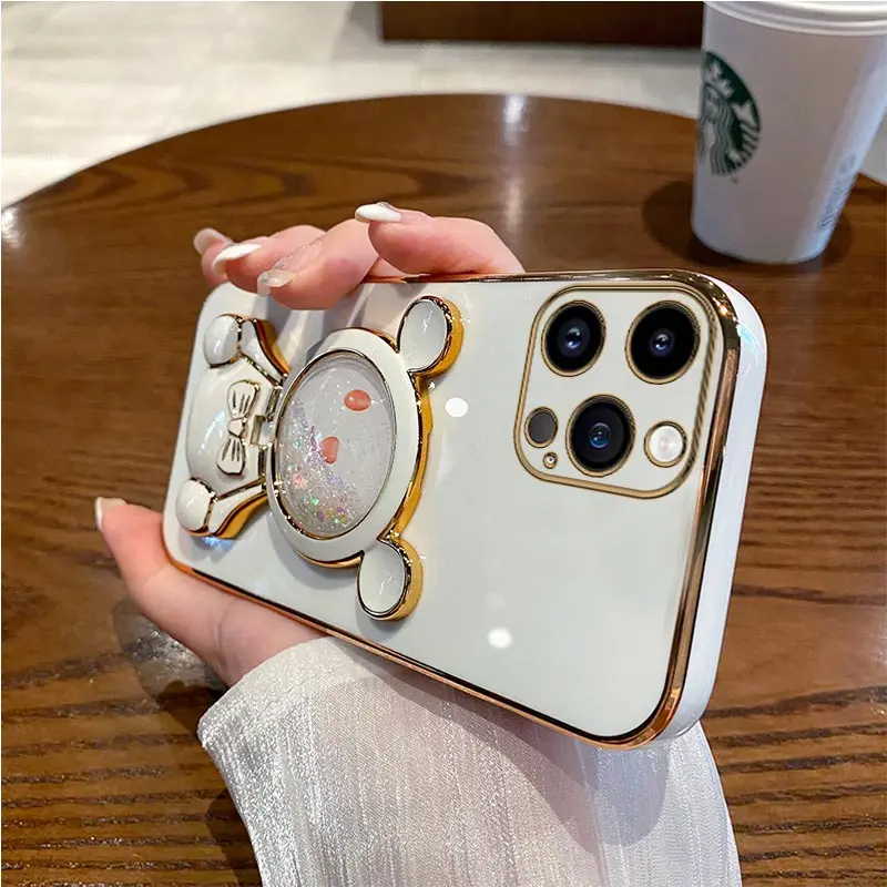 Quicksand Mirror Cute Bear Phone Holder Case para iPhone 13 14 11 12 Pro Max Mini 8 7 6 6S Plus X Xr Xs Max Se Stand Cover