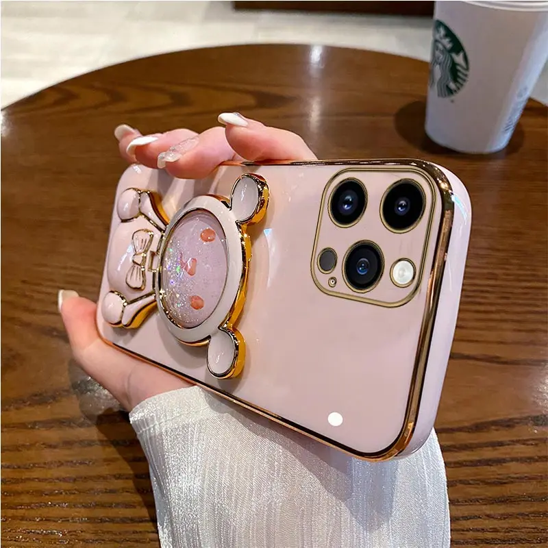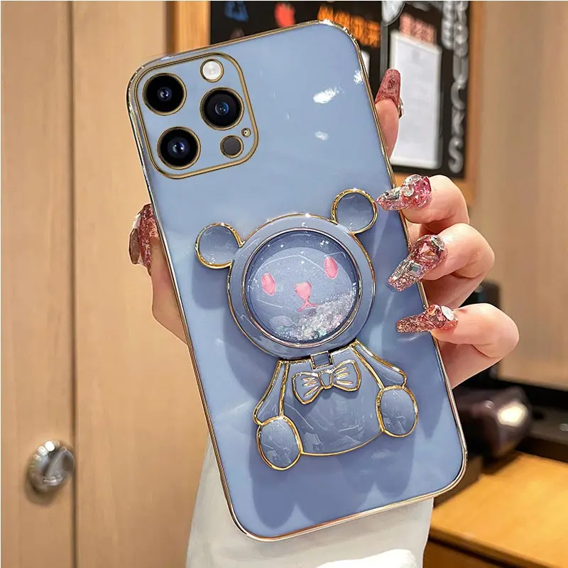 Comprar Funda de teléfono con soporte de oso lindo espejo de arena movediza para iPhone 13 14 11 12 Pro Max Mini 8 7 6 6S Plus X Xr Xs Max Se