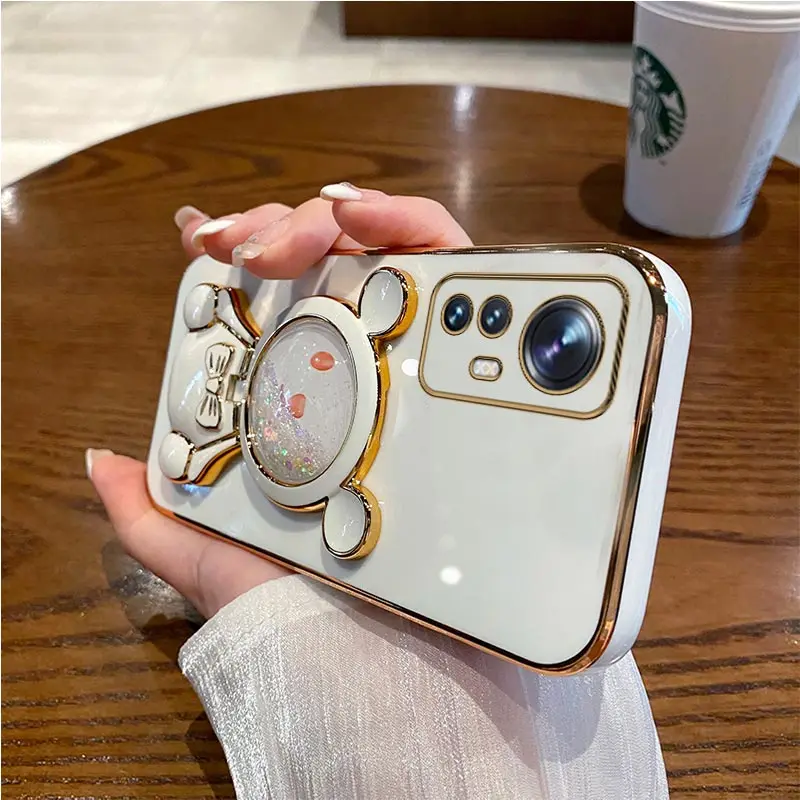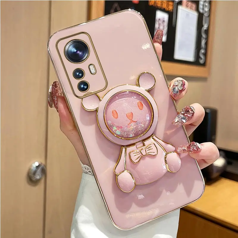 Comprar Funda de teléfono con soporte de oso lindo espejo de arena movediza para Xiaomi Mi 12 13 10 11 Lite 12T 11T Mi13 13 Pro 11 Ultra 5G 8 9T