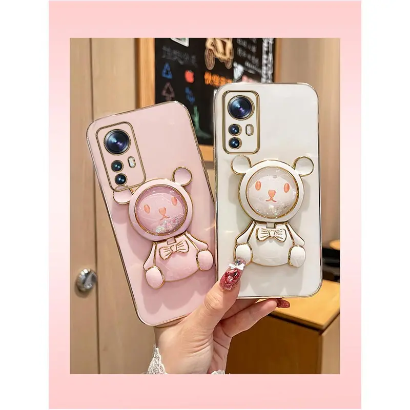 Funda con soporte para teléfono Quicksand Mirror Cute Bear para Xiaomi Mi 12 13 10 11 Lite 12T 11T Mi13 13 Pro 11 Ultra 5G 8 9T