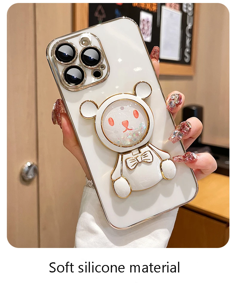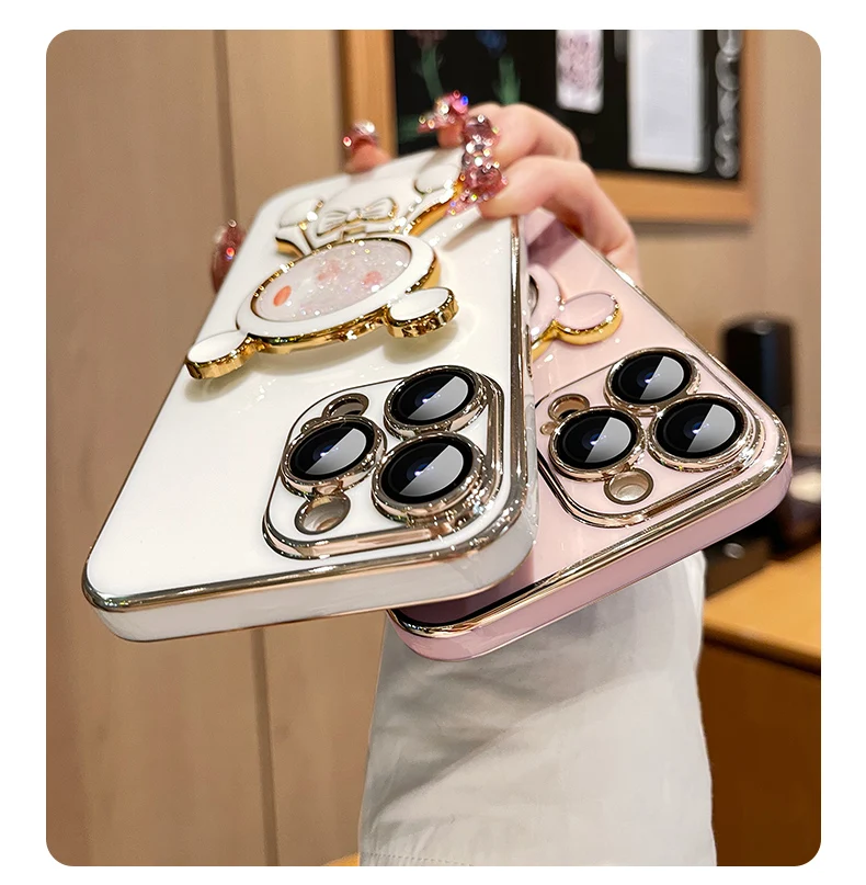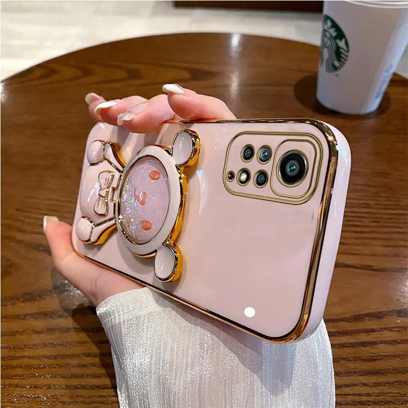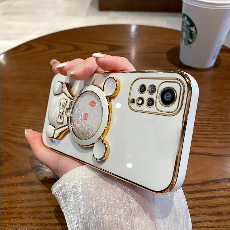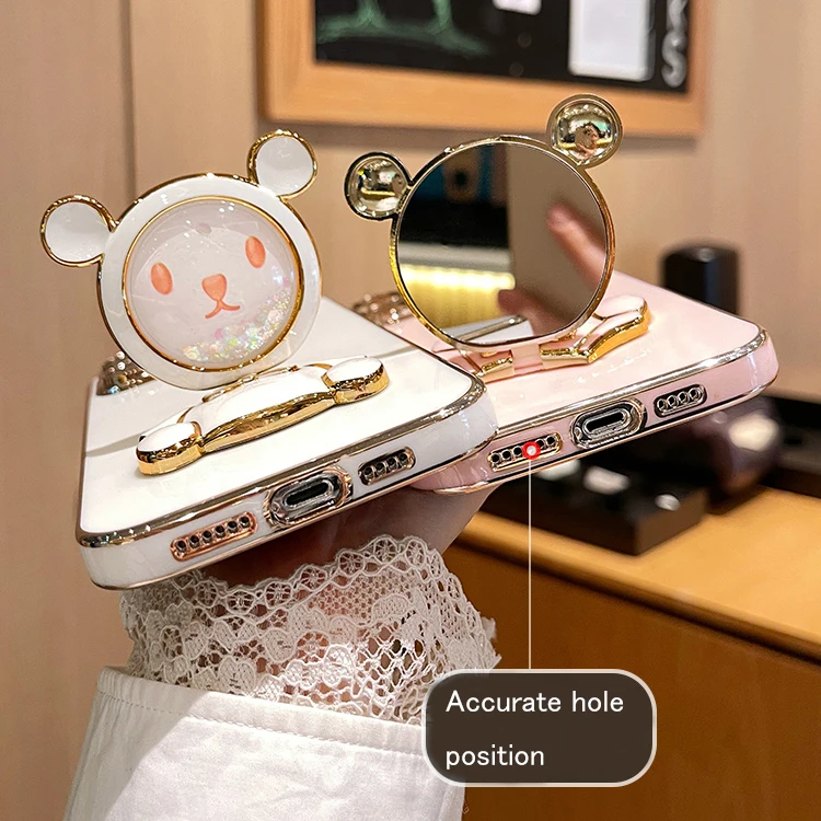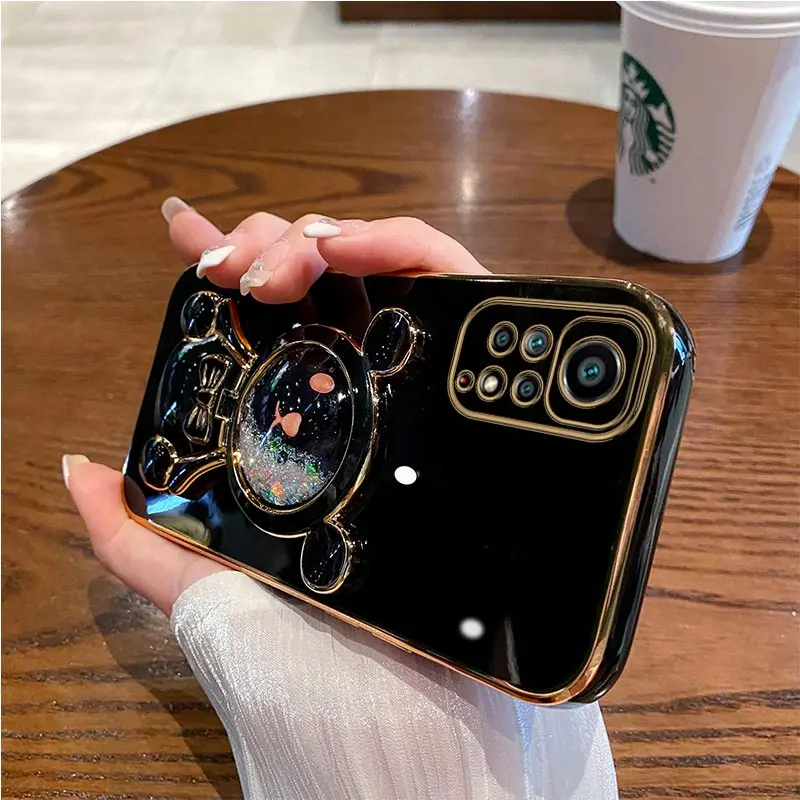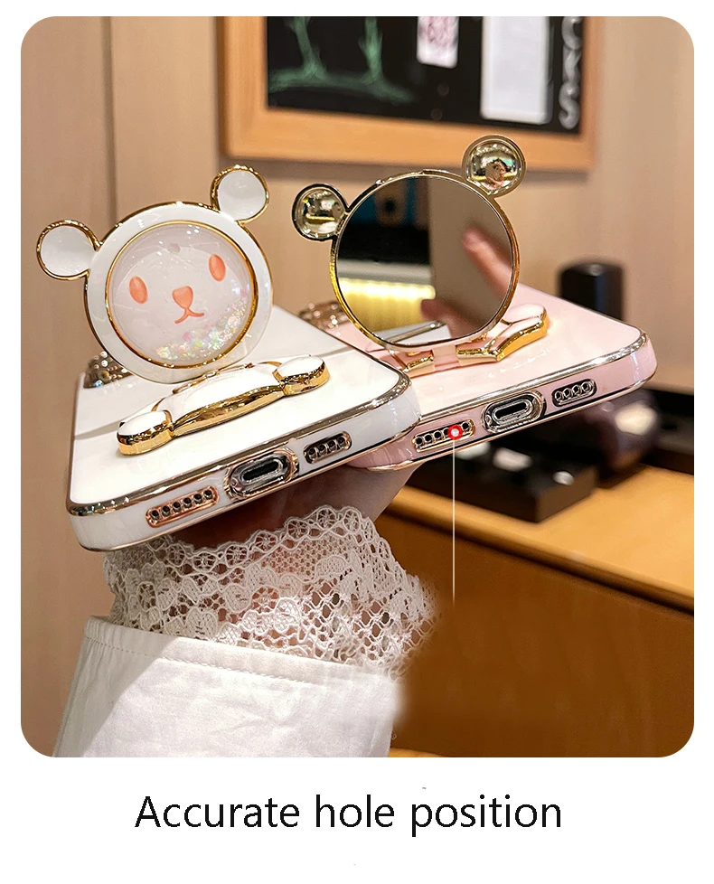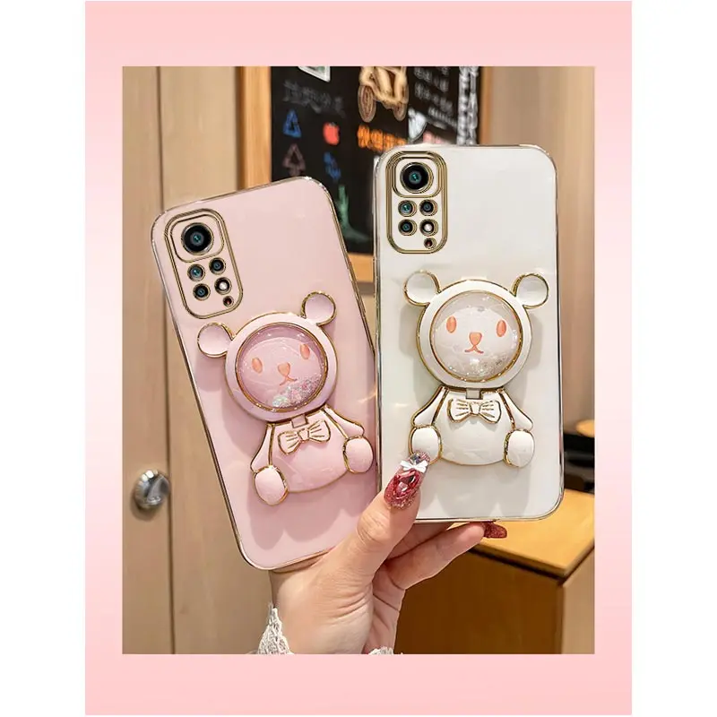 Comprar Funda de teléfono con soporte de oso lindo espejo de arena movediza para Xiaomi Redmi Note 12, 10, 11, 8, 9 Pro Max, 12, 4G, 5G, 10s, 11s, 9A, 9T, 9C