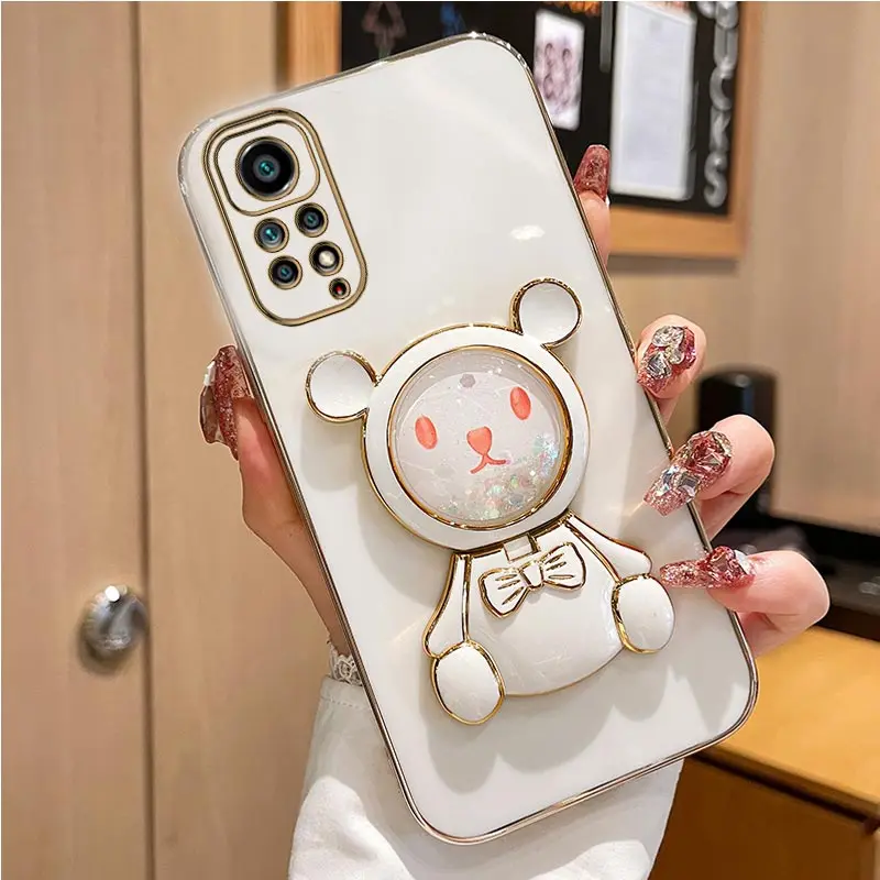 Comprar Funda de teléfono con soporte de oso lindo espejo de arena movediza para Xiaomi Redmi Note 12, 10, 11, 8, 9 Pro Max, 12, 4G, 5G, 10s, 11s, 9A, 9T, 9C
