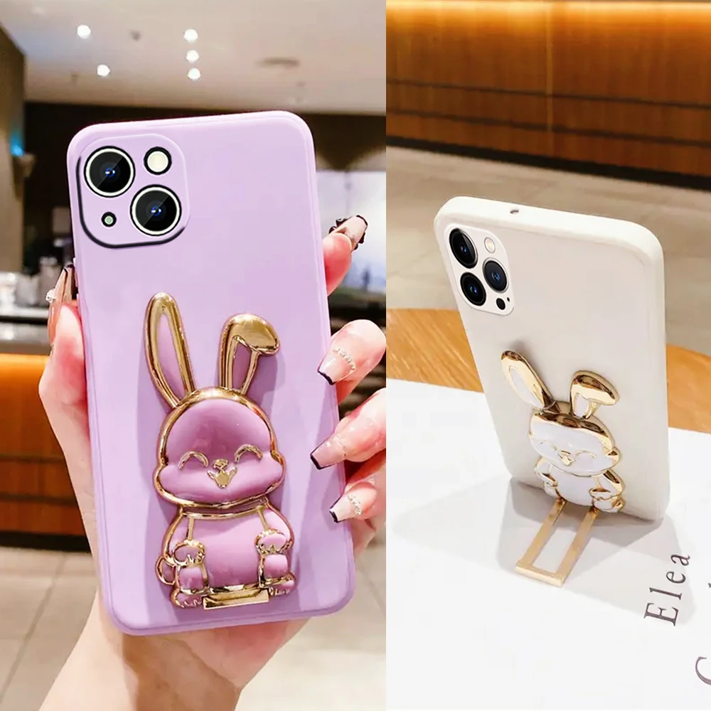 Funda de teléfono con soporte plegable de conejo para iPhone 15 14 13 12 11 Pro Max Mini X XS Max XR 7 8 Plus SE 2020, funda de silicona cuadrada suave