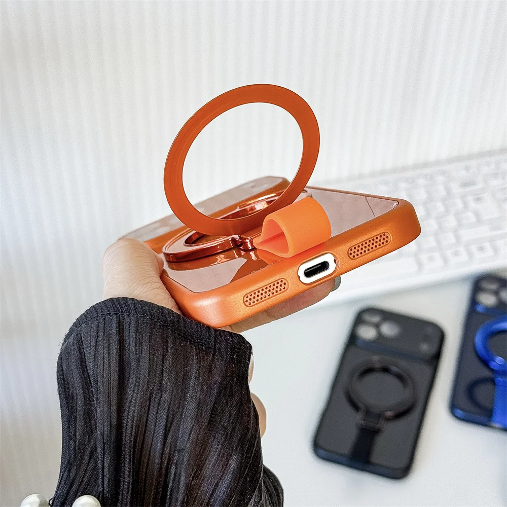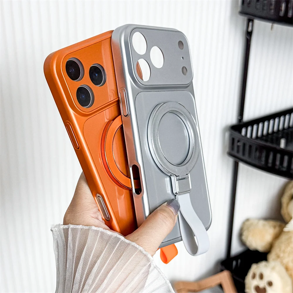 Funda de teléfono con soporte plegable magnético con correa de muñeca suave de lujo para iPhone 17 16 15 14 13 12 11 Pro Max Air Plus, cubierta protectora de lente
