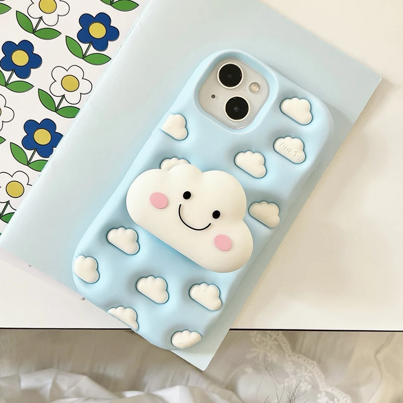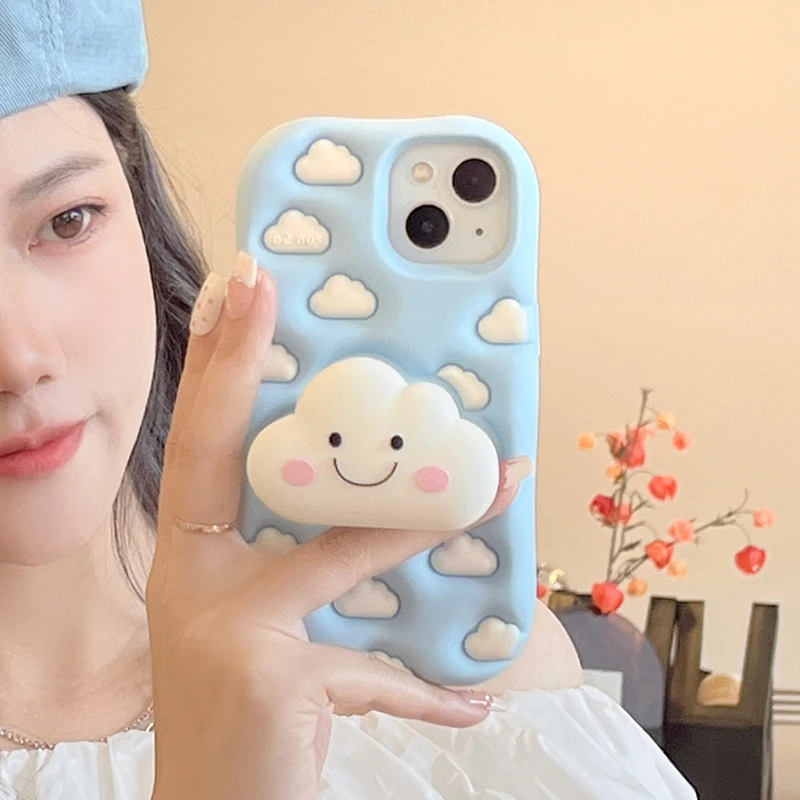 Funda de teléfono con soporte plegable de nube 3D con dibujos animados para iPhone 16 Pro Max 15 13 14 Funda trasera de silicona suave con soporte