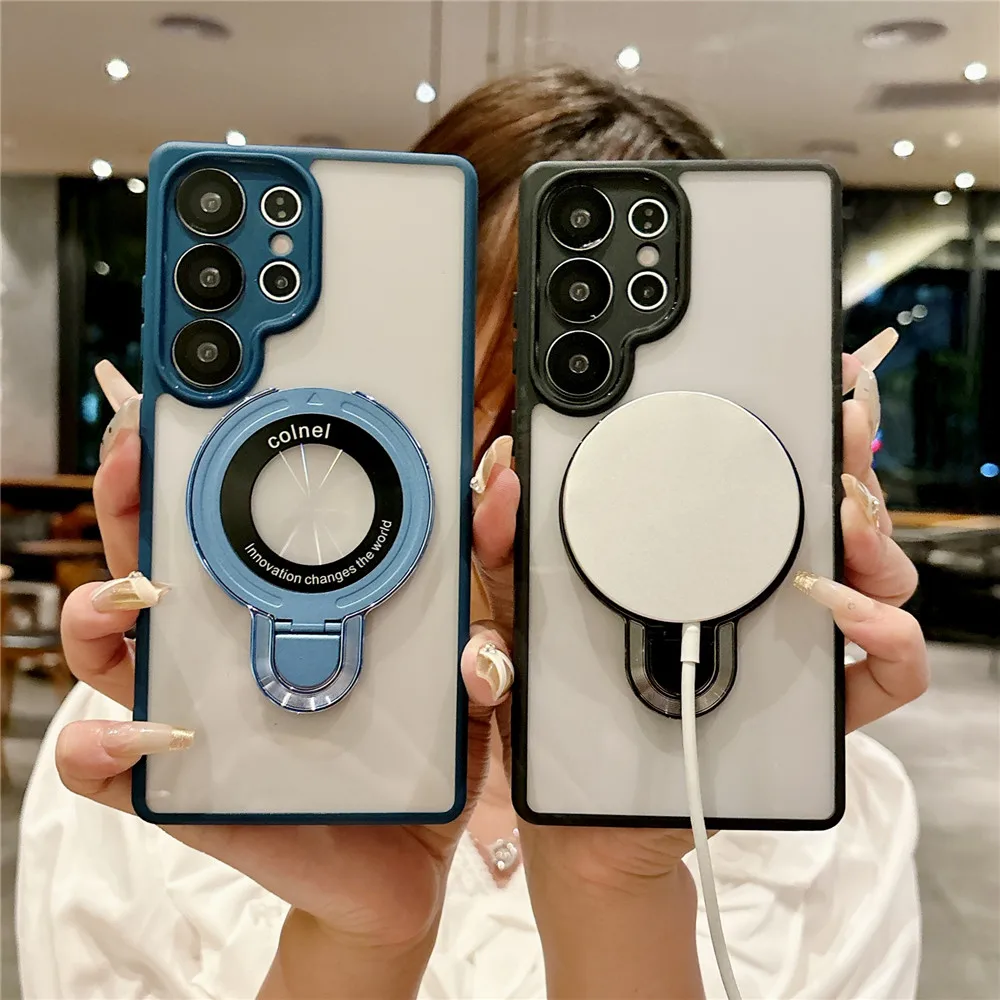 Funda de teléfono con soporte plegable a prueba de golpes para Samsung A52 A53 A32 A22 A12 A13 A23 A33 A02S A03S 4G 5G, cubierta dura acrílica transparente