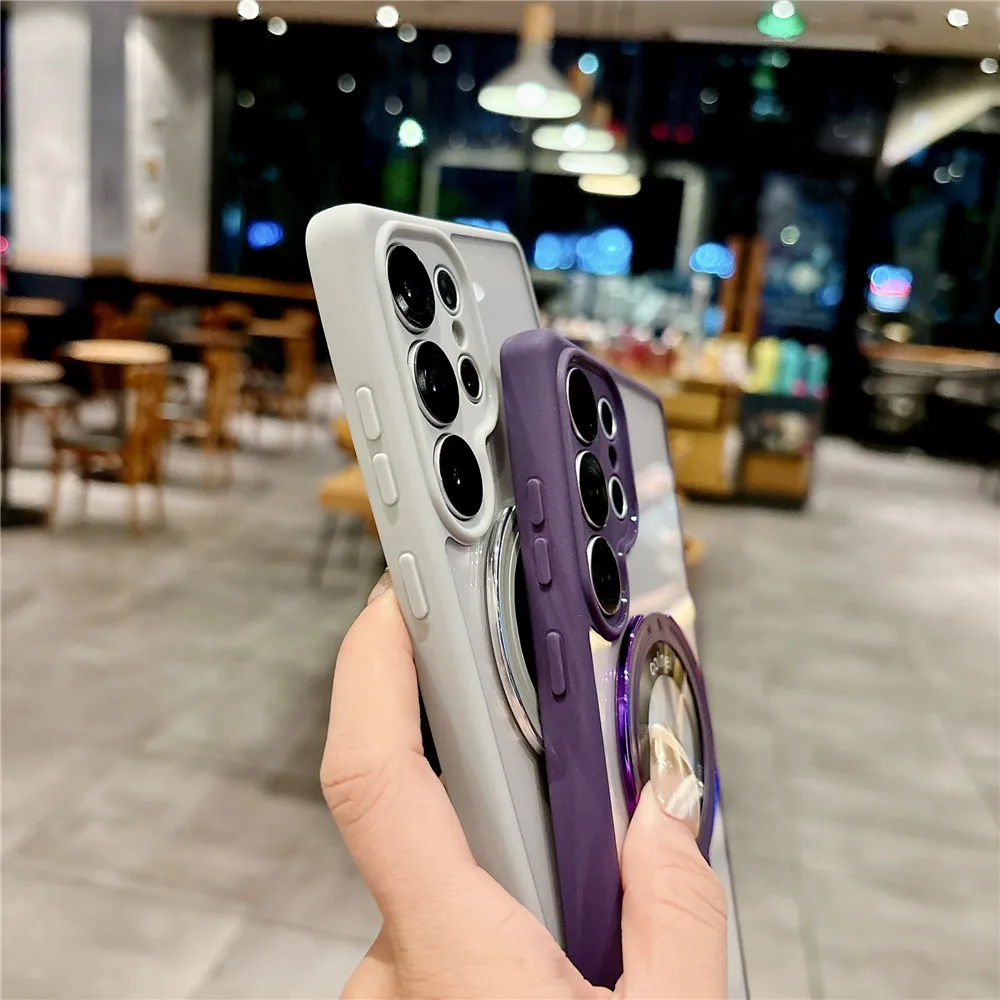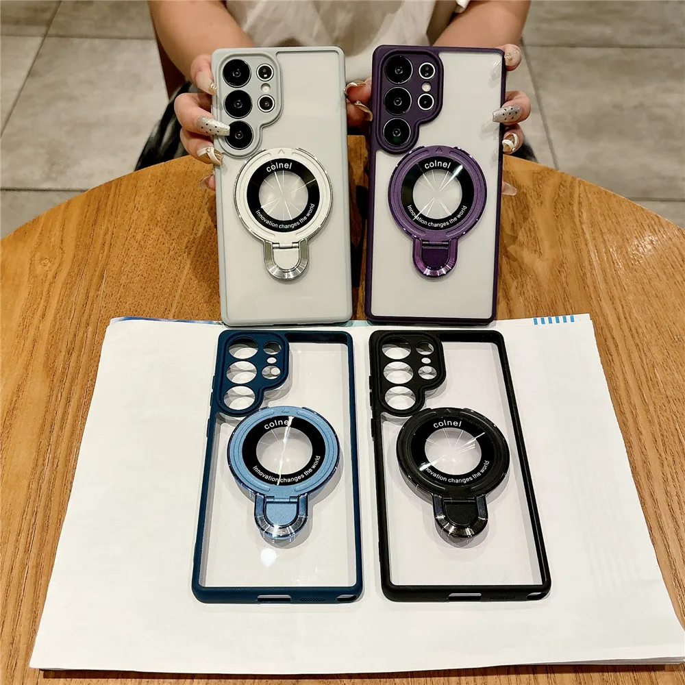 Funda de teléfono con soporte plegable a prueba de golpes para Samsung A52 A53 A32 A22 A12 A13 A23 A33 A02S A03S 4G 5G, cubierta dura transparente acrílica