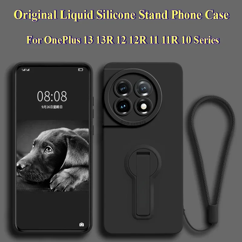 Funda Original de silicona líquida con soporte para teléfono OnePlus 13 13R 12 12R 11 11R 10 10T 10Pro 10R 5G Candy Macaroon protege cubierta suave