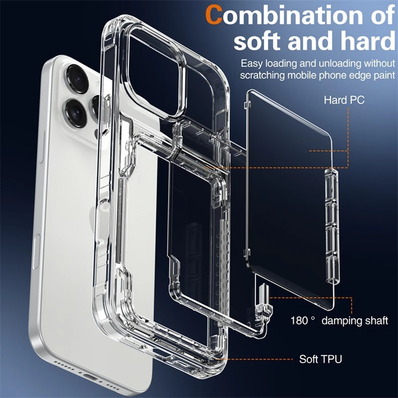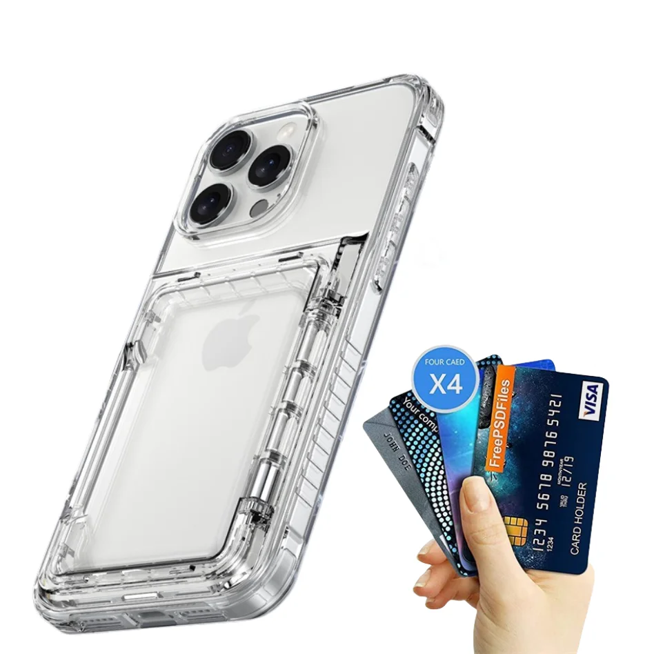 Comprar Funda de teléfono con soporte para tarjetas para iPhone 16 Pro Max 15 14 Plus 13 12 11Pro Max, funda transparente dura a prueba de golpes