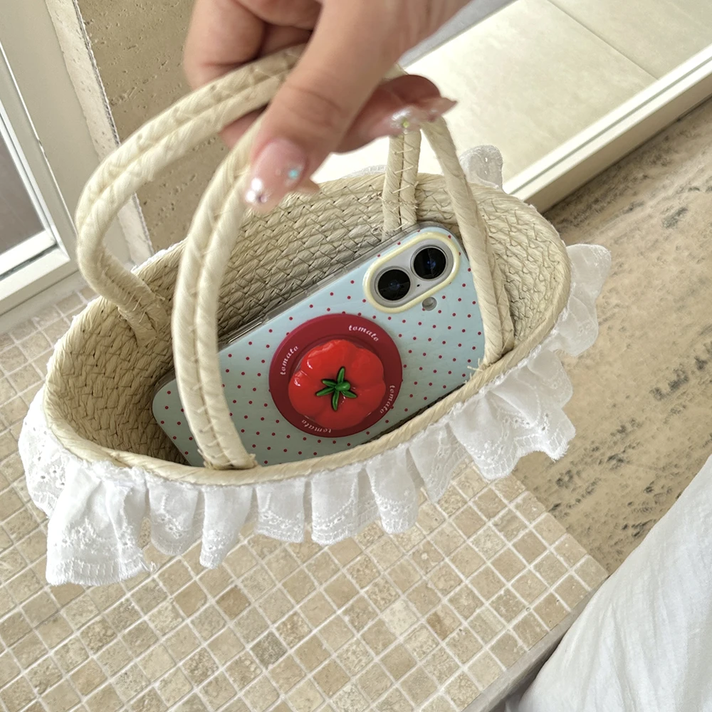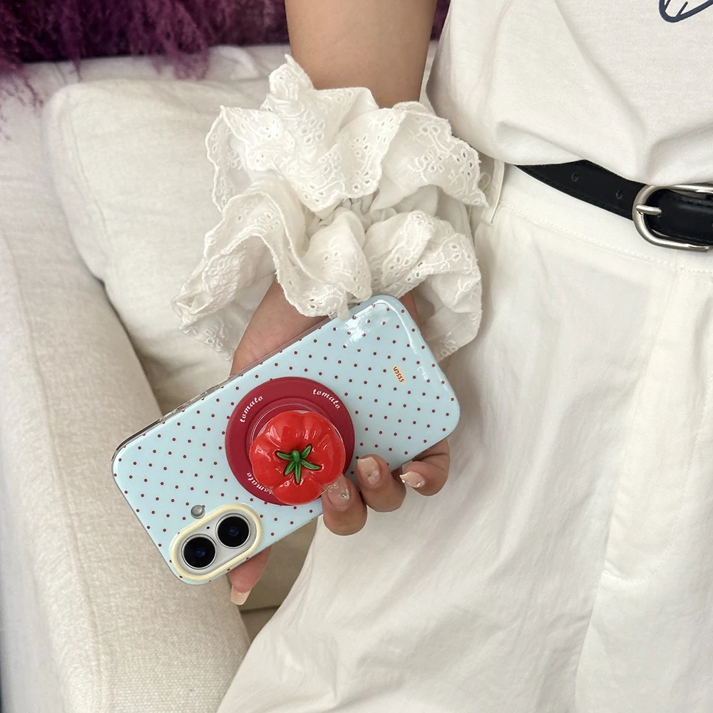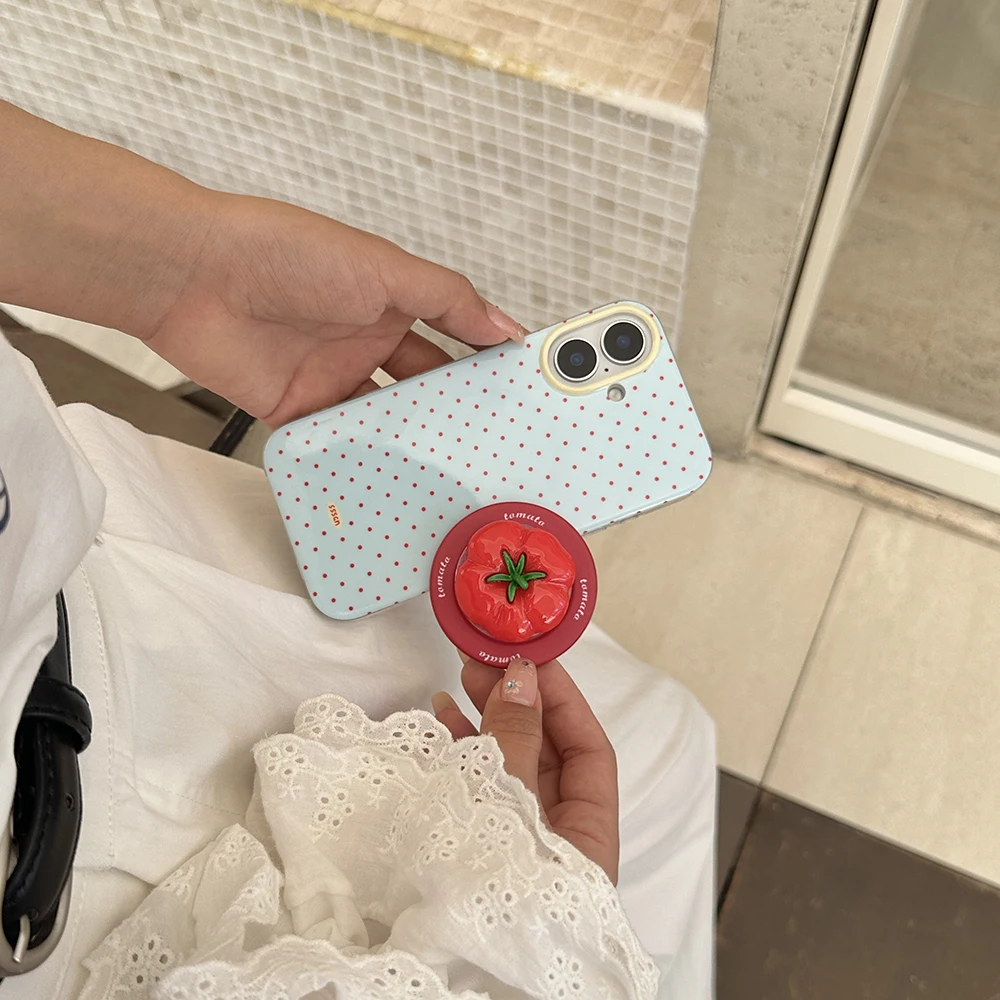 Funda de teléfono con soporte magnético para teléfono Tok con agarre magnético de tomate de lunares para iPhone 16 15 14 13 17 Pro Max divertida Compatible con funda trasera Magsafe