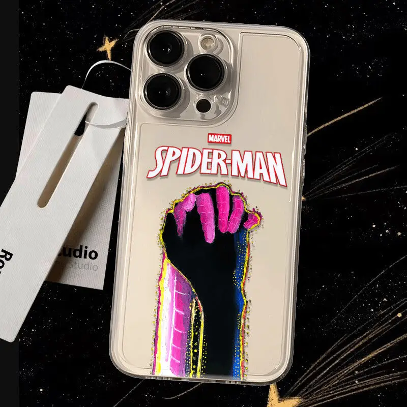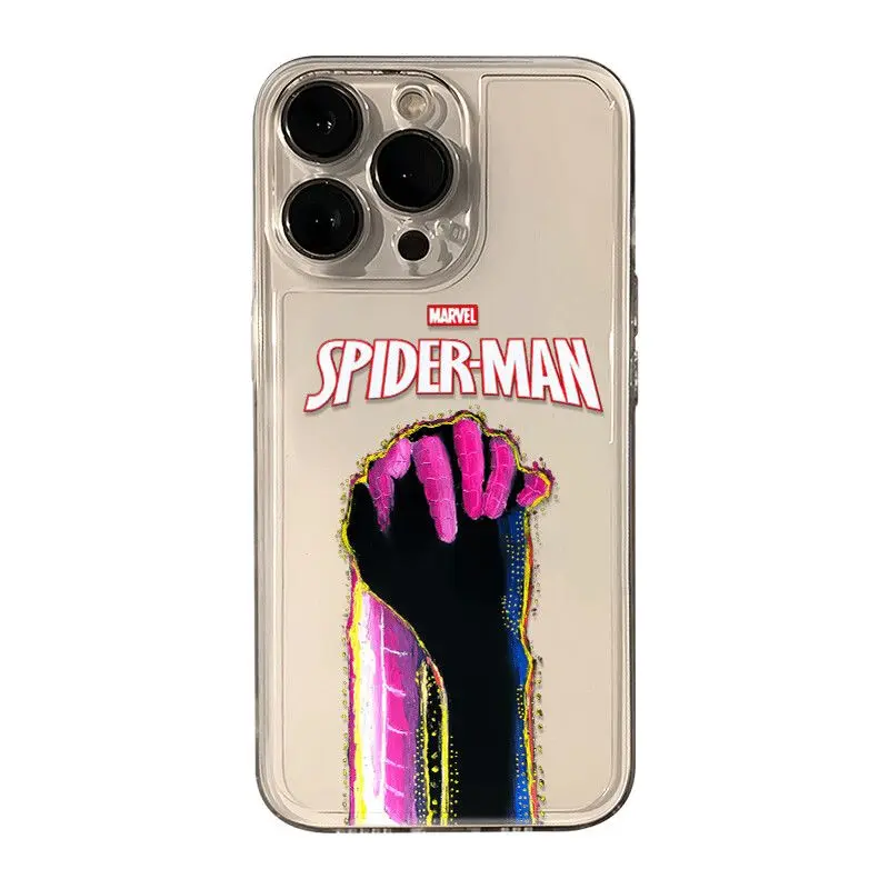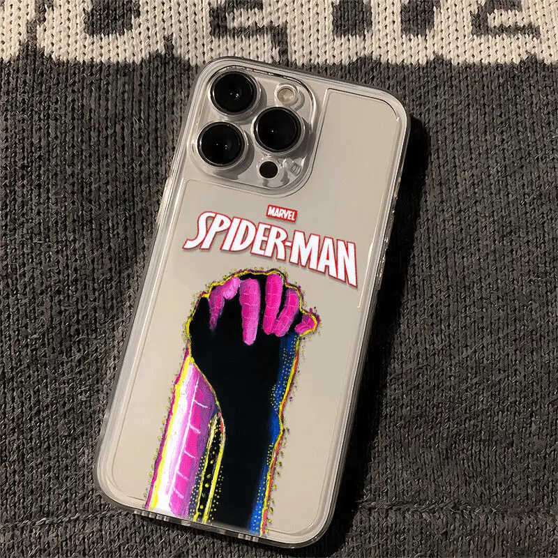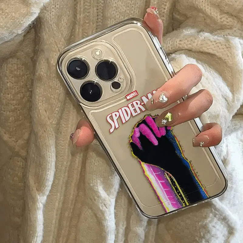 Comprar Funda de teléfono Spider Man pareja sosteniendo la mano para iPhone 16 15 14 13 12 11 Pro Max 7 8 Plus XR XS Max encantadora funda Kawaii anticaída