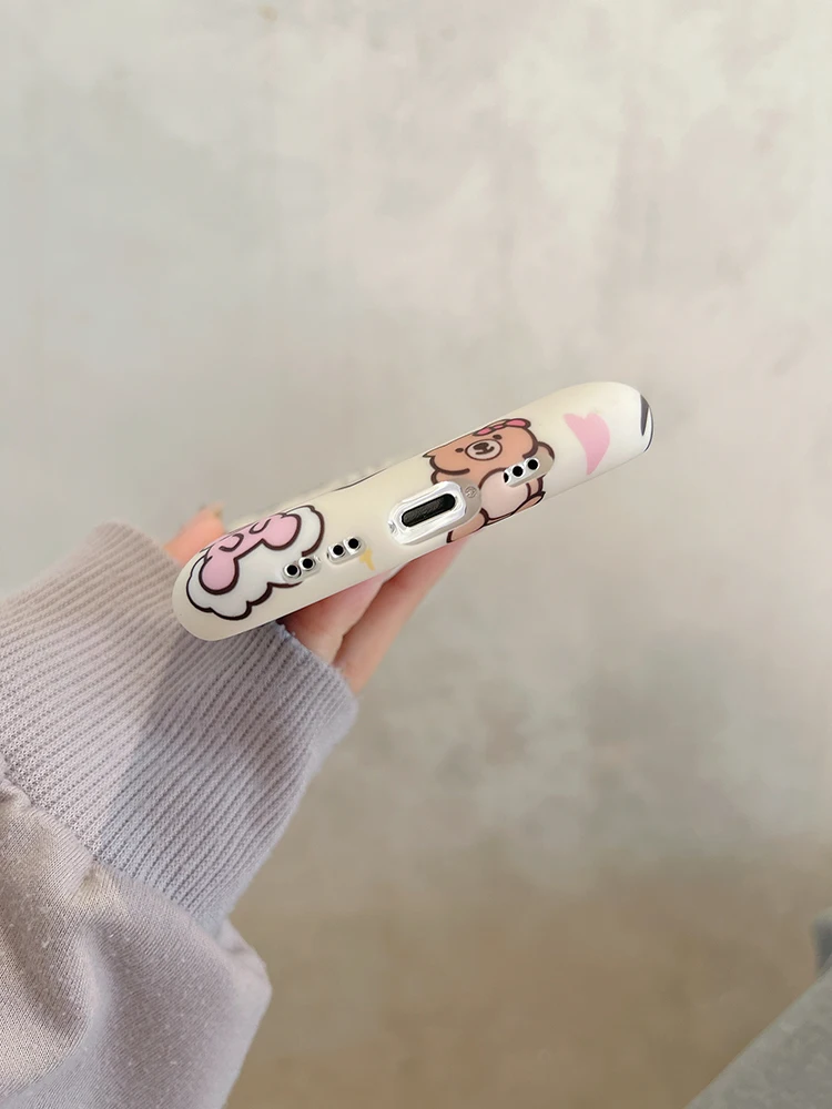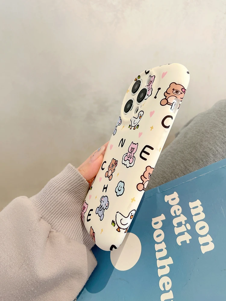 Funda de teléfono suave a prueba de golpes con marco ovalado de silicona líquida de animales encantadores de dibujos animados para iPhone 15 14 13 12 11