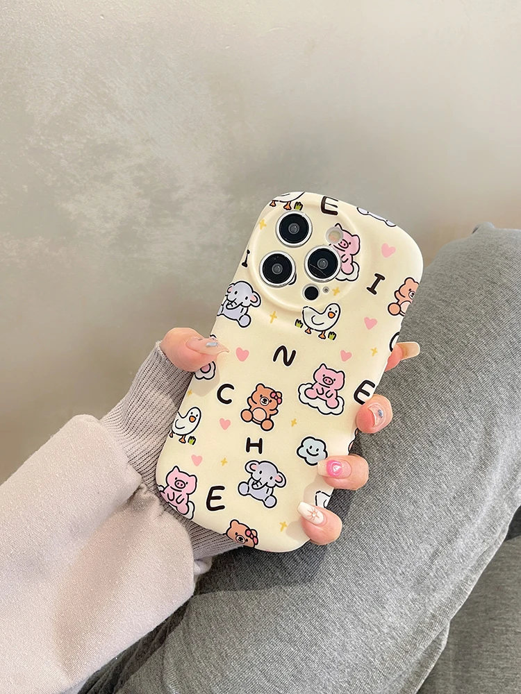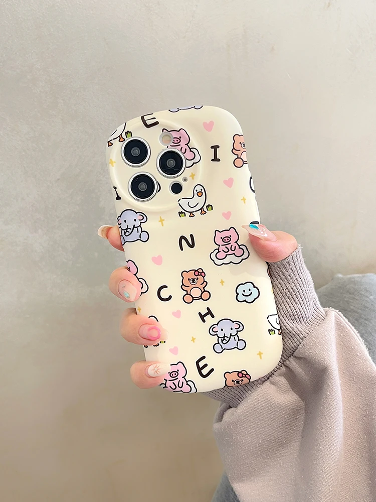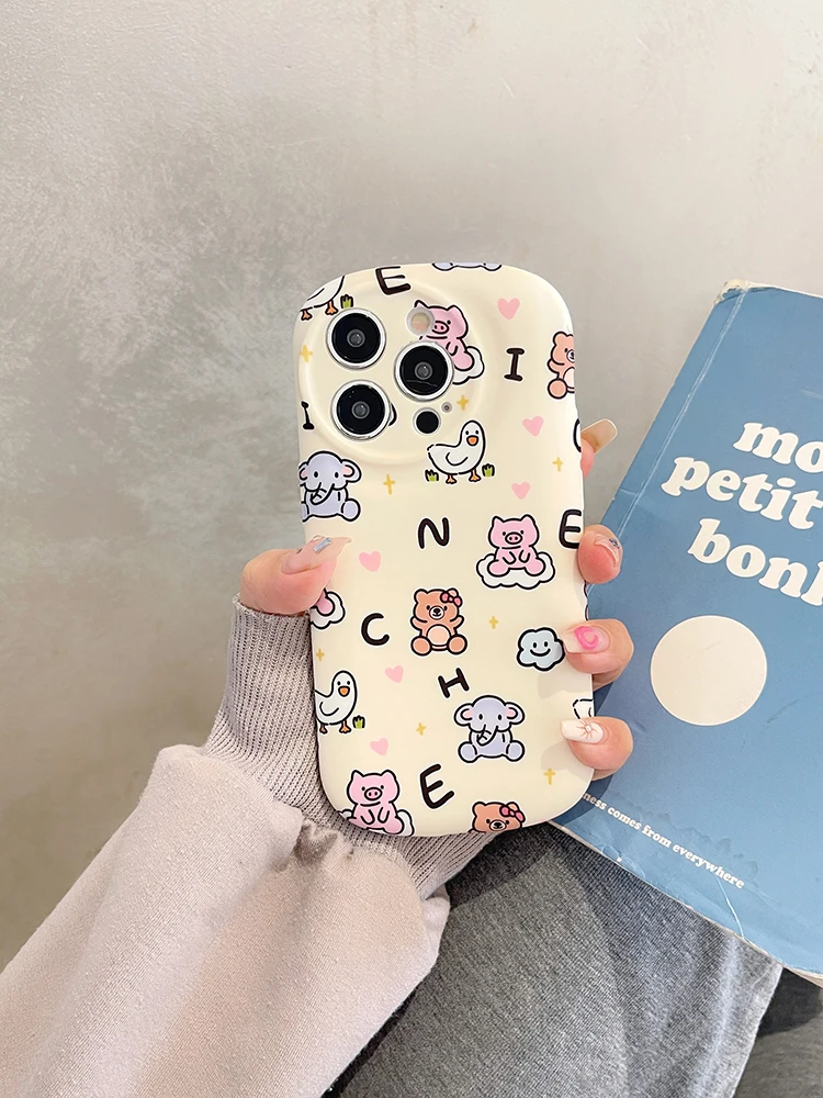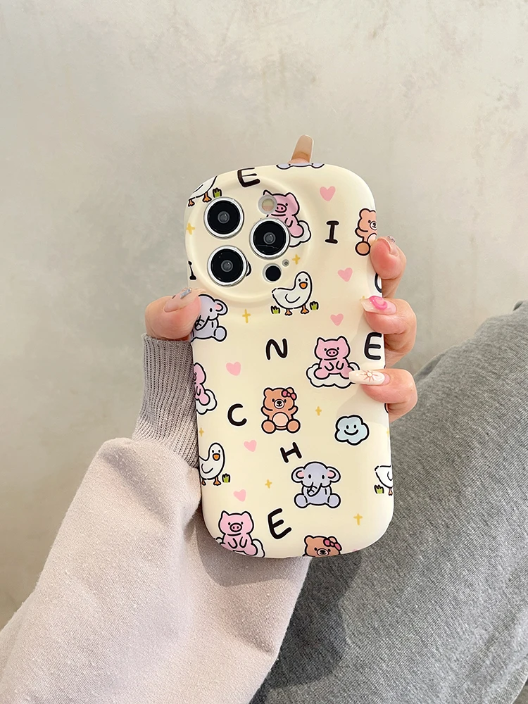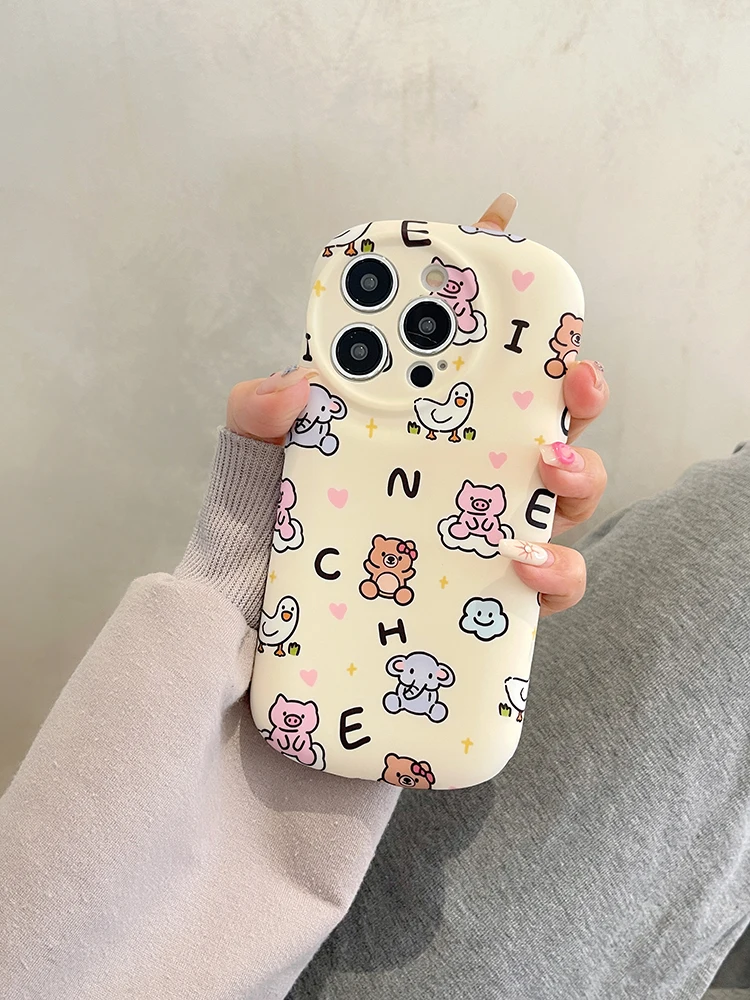 Funda de teléfono suave a prueba de golpes con marco ovalado de silicona líquida de animales encantadores de dibujos animados para iPhone 15 14 13 12 11