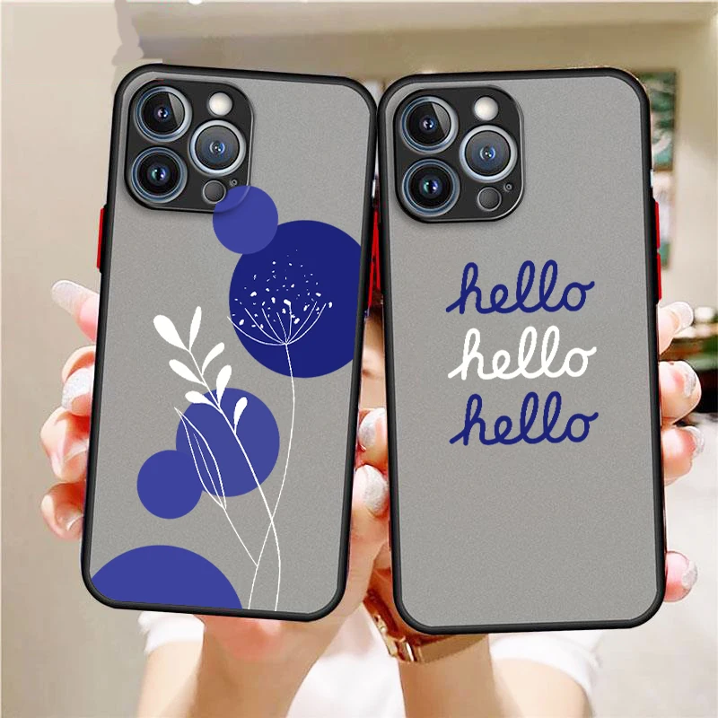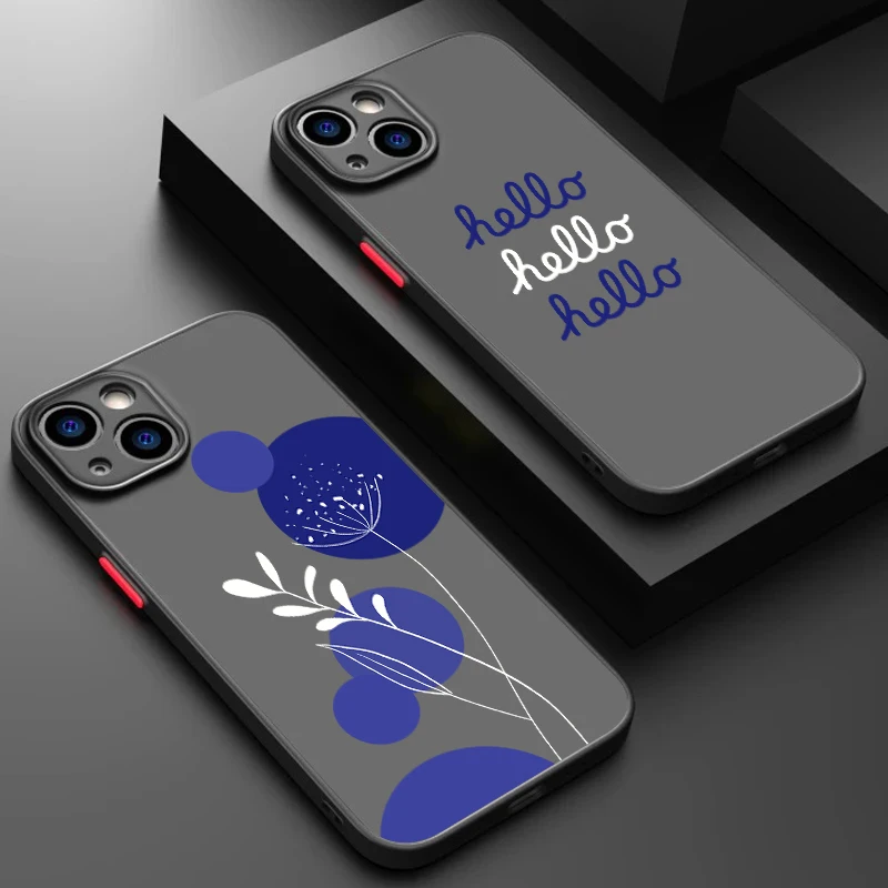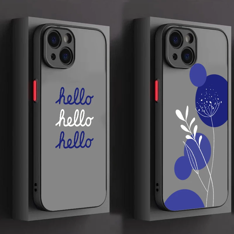Funda de teléfono suave para Apple iPhone, carcasa translúcida autoesmerilada, color azul, a la moda, para modelos 16, 15, 14, 13, 12, 11, XS, XR, X Pro Max Plus Mini