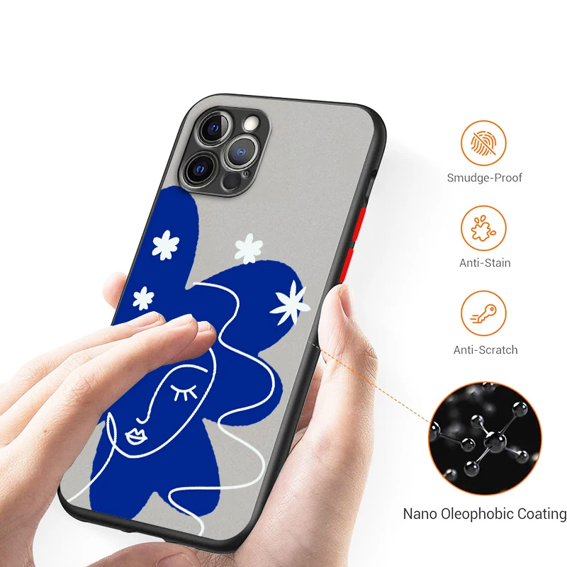 Comprar Funda de teléfono suave para Apple iPhone, carcasa translúcida autoesmerilada, color azul, a la moda, para modelos 16, 15, 14, 13, 12, 11, XS, XR, X Pro Max Plus Mini