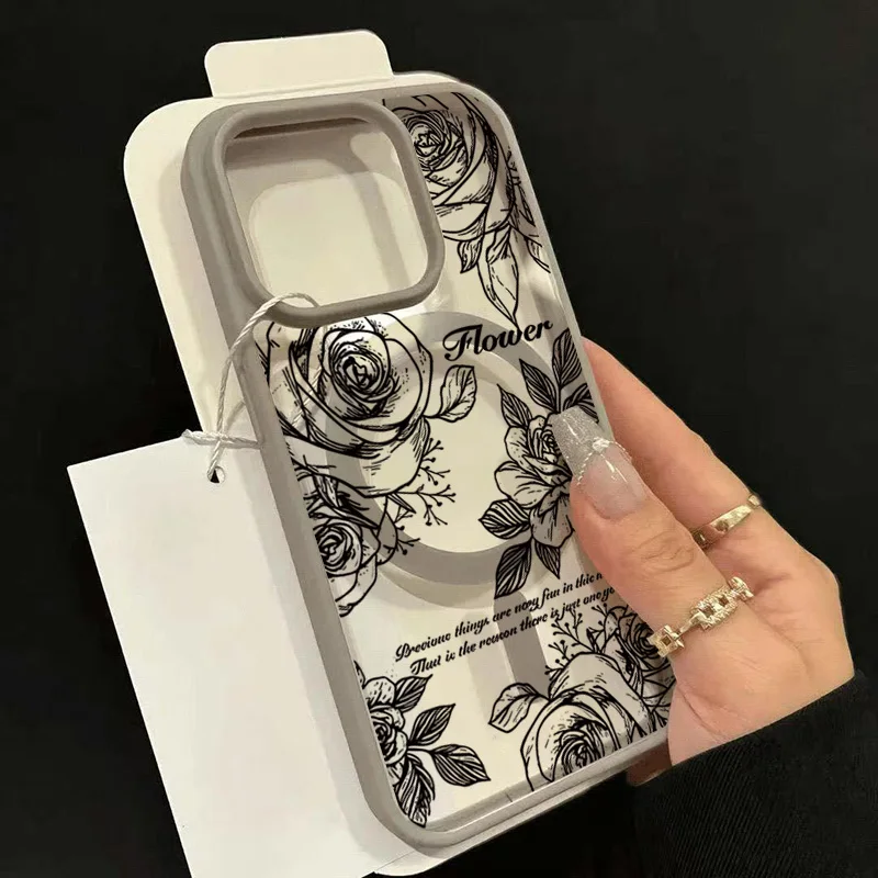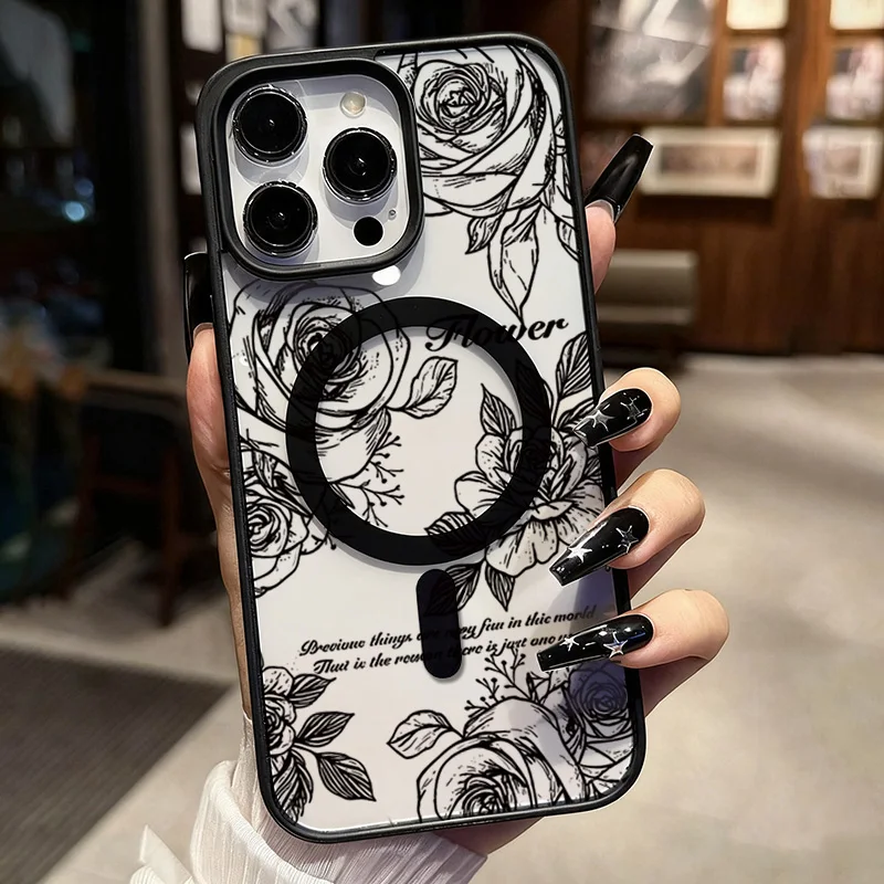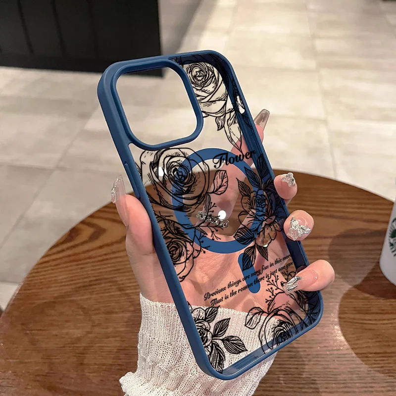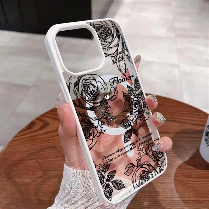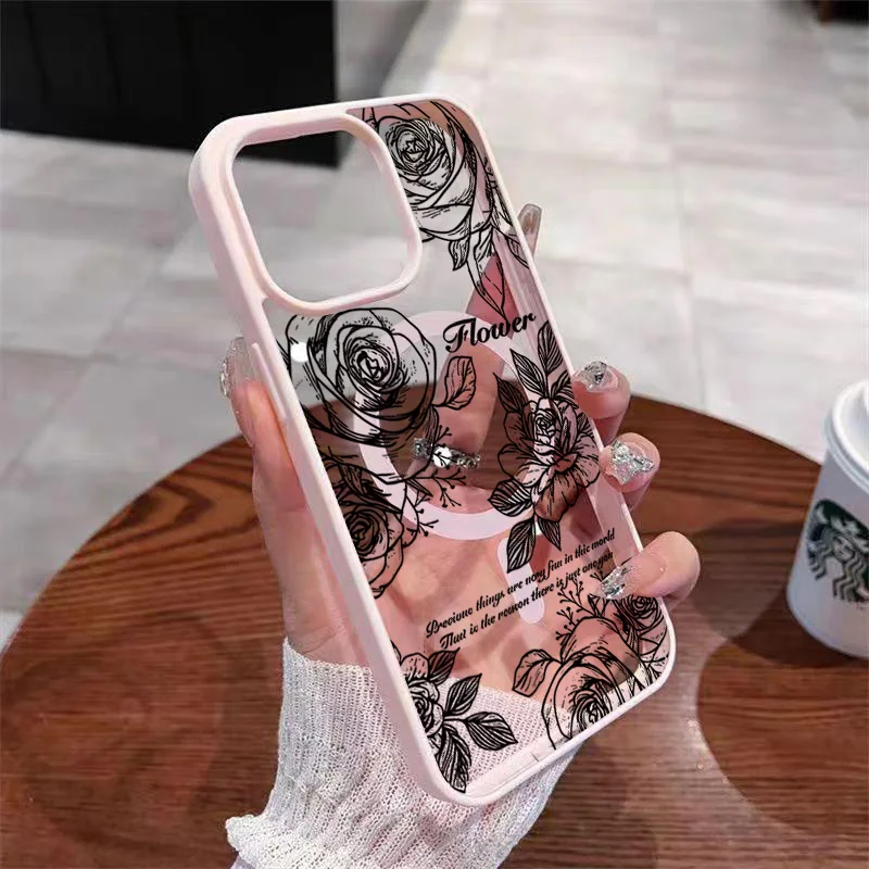 Funda de teléfono suave Circular magnética integrada Ultra transparente Floral para iPhone 17 Pro Max 16 15 14 Plus 13 12 11 cubierta transparente de aire